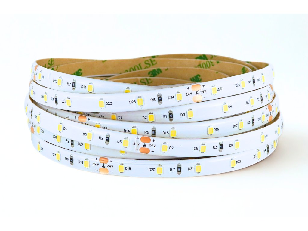 De la o putere de 4,8W/m, banda produce până la 480lm/m. Densitatea LED-urilor este de 60pcs/m, astfel încât banda strălucește uniform pe întreaga sa lungime. Această bandă nu trebuie lipită de garnitura de aluminiu, dar vă recomandăm totuși să luați în considerare acest pas. Toate benzile noastre sunt echipate cu folie autoadezivă 3M 300LSE, care aderă perfect la substrat. Acesta trebuie să fie neted și trebuie degresat înainte de lipire.