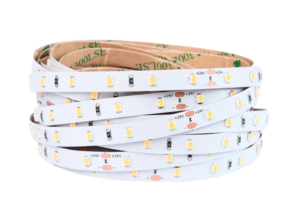 De la o putere de 4,8W/m, banda produce până la 480lm/m. Densitatea LED-urilor este de 60pcs/m, astfel încât banda strălucește uniform pe întreaga sa lungime. Această bandă nu trebuie lipită de garnitura de aluminiu, dar vă recomandăm totuși să luați în considerare acest pas. Toate benzile noastre sunt echipate cu folie autoadezivă 3M 300LSE, care aderă perfect la substrat. Acesta trebuie să fie neted și trebuie degresat înainte de lipire.