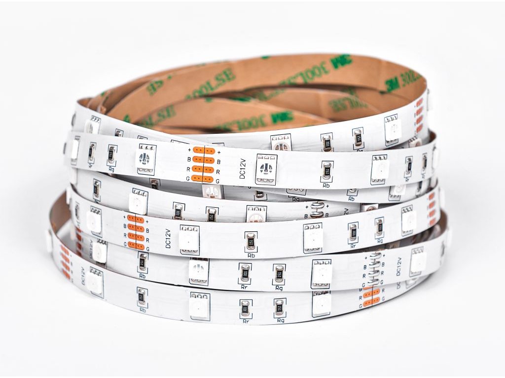 Banda RGB de 7,2W/m produce până la 300lm/m. Densitatea LED-urilor este de 30pcs/m, banda strălucește uniform pe toată lungimea sa. Această bandă nu trebuie lipită de garnitura de aluminiu, dar vă recomandăm totuși să luați în considerare acest pas. Toate benzile noastre sunt echipate cu folie autoadezivă 3M 300LSE, care aderă perfect la substrat. Acesta trebuie să fie neted și trebuie degresat înainte de lipire.