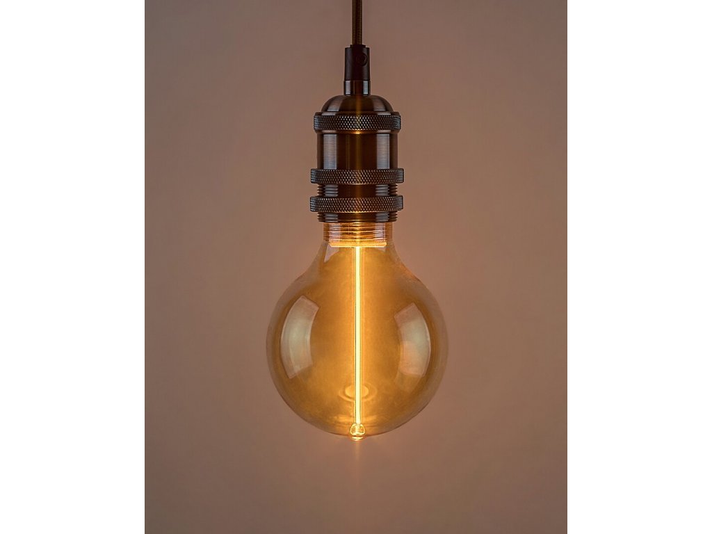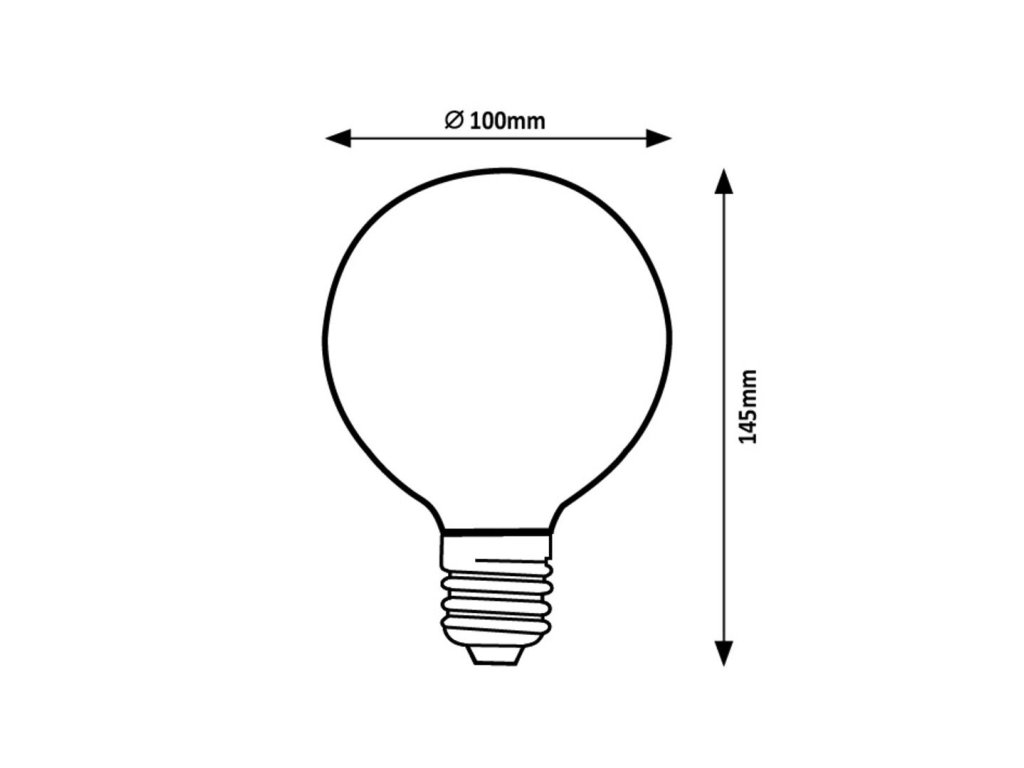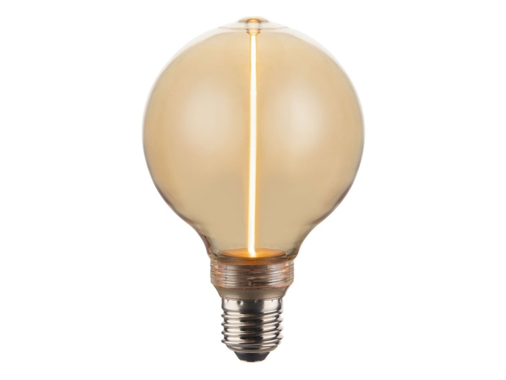 Becul LED cu filament în formă de G95 are o putere de 3 W și oferă un flux luminos de 170 de lumeni. Designul ambră al sticlei și filamentul unic în formă de linie subțire dreaptă creează o lumină decorativă plăcută, potrivită pentru interioare moderne și clasice. Becul este ideal în special pentru corpurile de iluminat deschise, lustrele suspendate sau ca decorațiune suspendată independentă, care atrage imediat atenția. Datorită unghiului de emisie de 330°, lumina este distribuită uniform în întregul spațiu. Este echipat cu un soclu E27, pe care îl puteți utiliza cu ușurință în toate corpurile de iluminat obișnuite cu acest soclu.