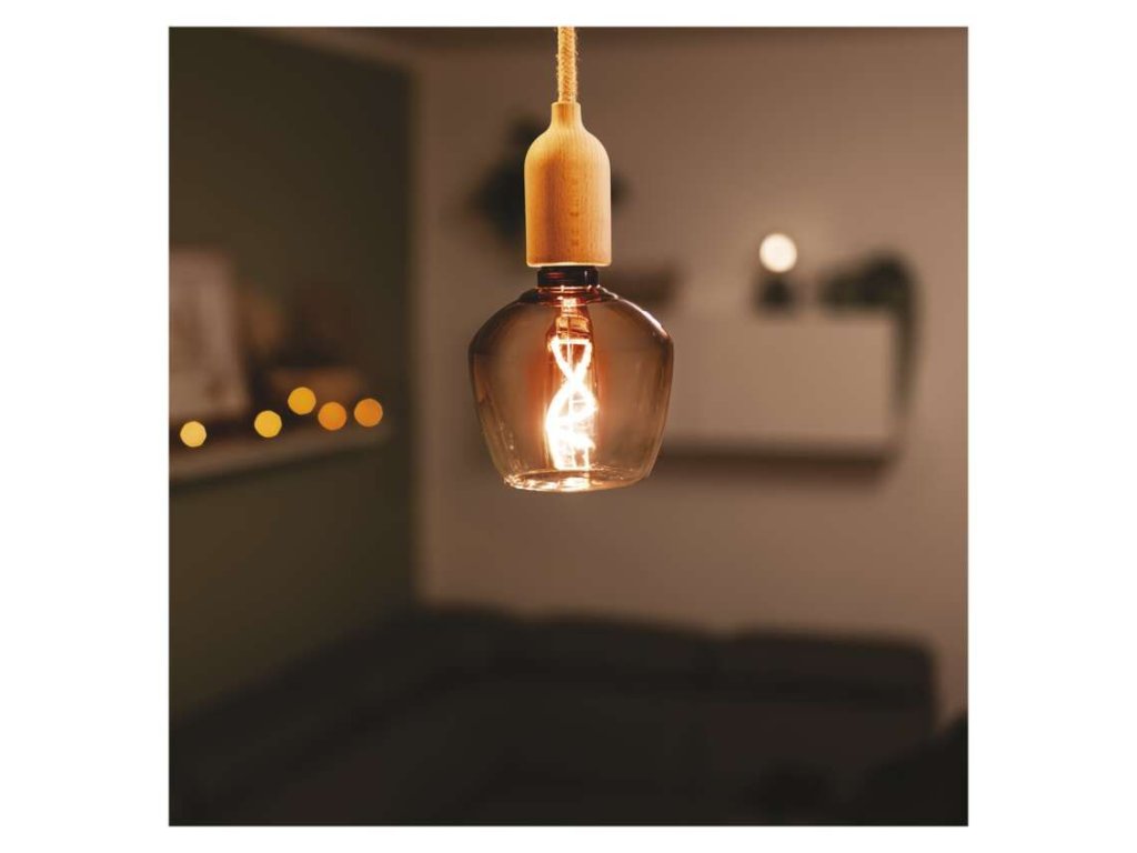 Bec de filament LED în formă de S123 are putere 4 W și oferă flux luminos de 150 lumeni. Datorită nuanței plăcute de chihlimbar a sticlei, devine un element decorativ unic pentru orice interior. Se potrivește perfect în corpurile de iluminat deschise, candelabrele suspendate sau ca decorațiune suspendată individual, care va atrage cu siguranță atenția. Datorită unghiului de emisie de 330°, lumina este distribuită uniform în întregul spațiu. Este echipată cu soclu E27, pe care o puteți folosi fără probleme în toate corpurile de iluminat obișnuite cu acest soclu.