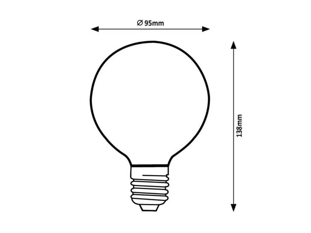 Becul LED cu filament cu sticlă fumurie în formă de G95 are o putere de 5 W și oferă un flux luminos de 200 de lumeni, ceea ce îl predestinează pentru iluminatul plăcut al interiorului sau ca un accesoriu de design pentru lămpi, candelabre și alte corpuri de iluminat decorative. Datorită unghiului de radiație de 360°, lumina este distribuită uniform în întregul spațiu. Este echipat cu un soclu E27, pe care îl puteți utiliza cu ușurință în toate corpurile de iluminat obișnuite cu acest soclu.