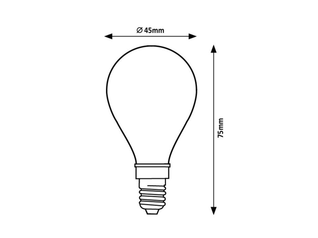 Becul LED retro cu filament în formă de G45 are o putere de 4 W și oferă un flux luminos de 350 lumeni, ceea ce îl face potrivit pentru iluminarea plăcută a interiorului sau ca accesoriu de design pentru lămpi, candelabre și alte corpuri de iluminat decorative. Datorită unghiului de radiație de 360°, lumina este distribuită uniform în întregul spațiu. Este echipat cu un soclu E14, pe care îl puteți utiliza fără probleme în toate corpurile de iluminat obișnuite cu acest soclu.