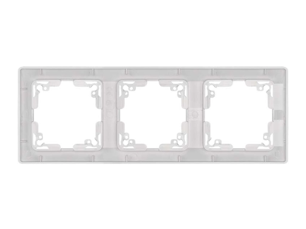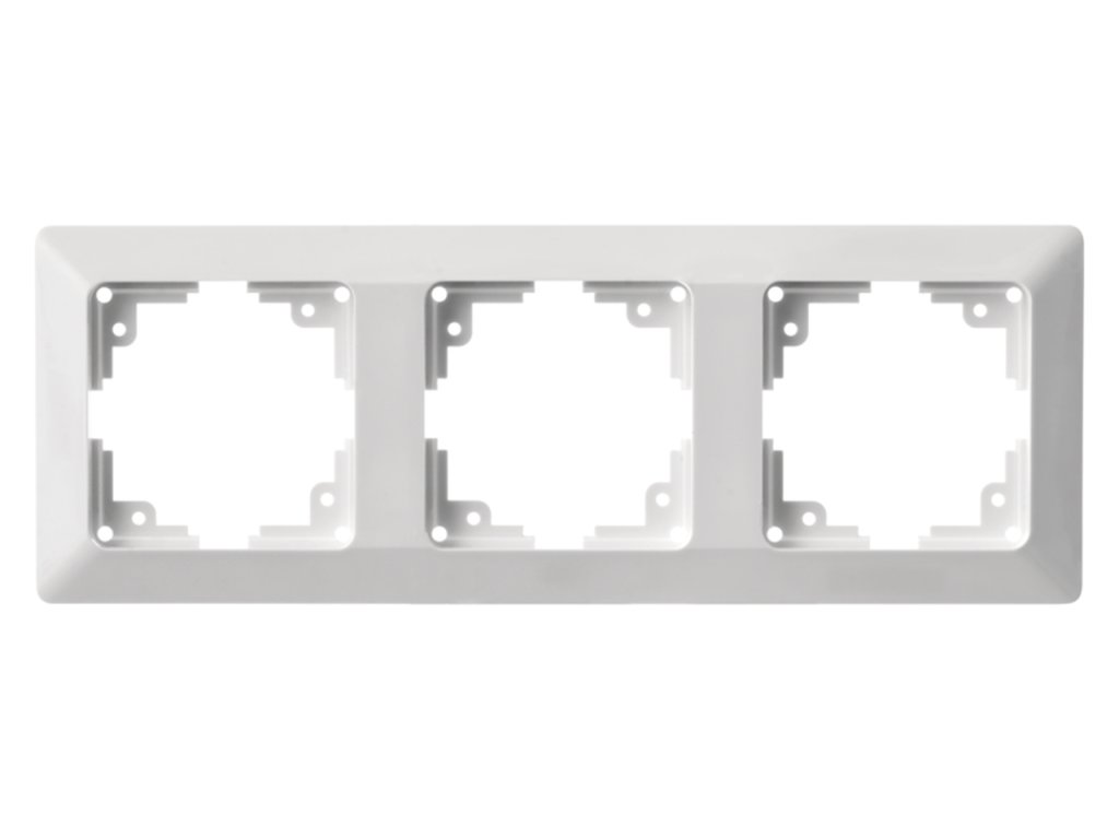 Cadru alb triplu pentru montare orizontală și verticală și este proiectat pentru a găzdui 3 întrerupătoare sau prize.