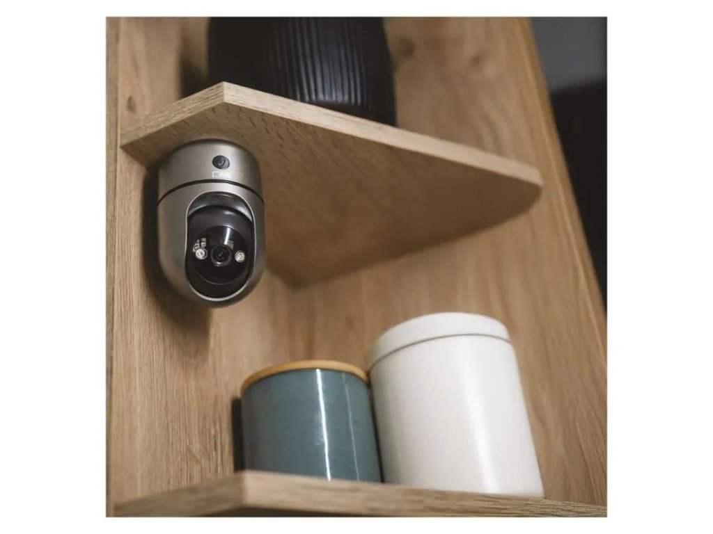 Înregistrarea poate fi salvată pe un card de memorie SD sau în cloud, sau camera poate fi conectată la un sistem NVR pentru gestionarea centralizată a mai multor dispozitive. Alimentarea este asigurată printr-un cablu USB-C, iar datorită dimensiunilor compacte, camera poate fi ușor plasată pe o poliță, masă sau montată pe perete.