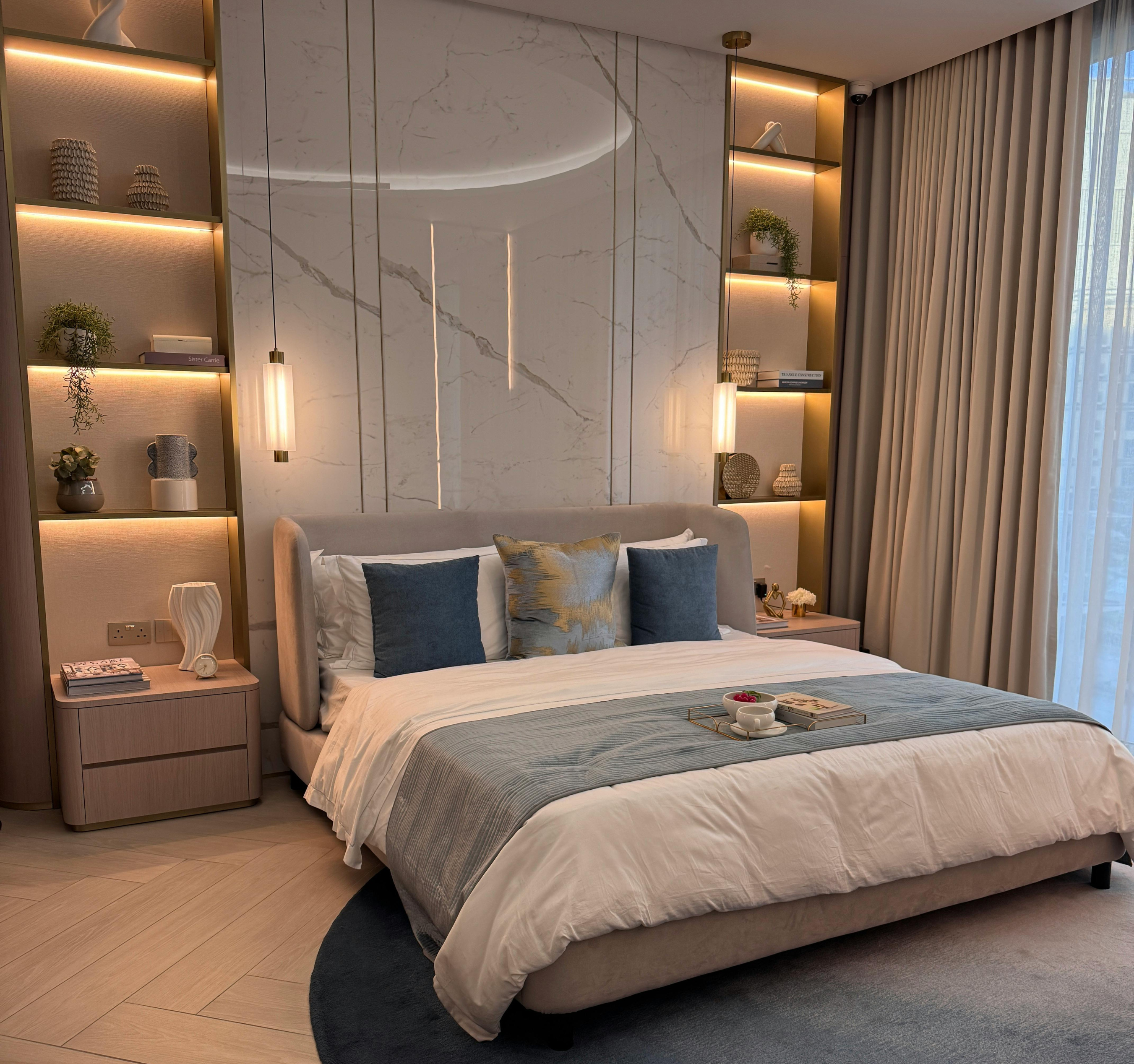 Pentru dormitor, alegerea ideală este lumina caldă, de tip amber (1800–2200 K) sau banda LED biodinamică. Aceasta favorizează relaxarea și creează o atmosferă plăcută și liniștită. Benzile LED pot fi amplasate, de exemplu, sub pat sau de-a lungul pereților, obținând astfel o lumină nocturnă discretă și difuză, care nu orbește și ajută la calmarea minții înainte de somn. Dacă optați pentru o variantă cu intensitate reglabilă, veți putea ajusta continuu intensitatea luminii – de la o lumină puternică potrivită pentru citit până la o lumină estompată, care favorizează adormirea.