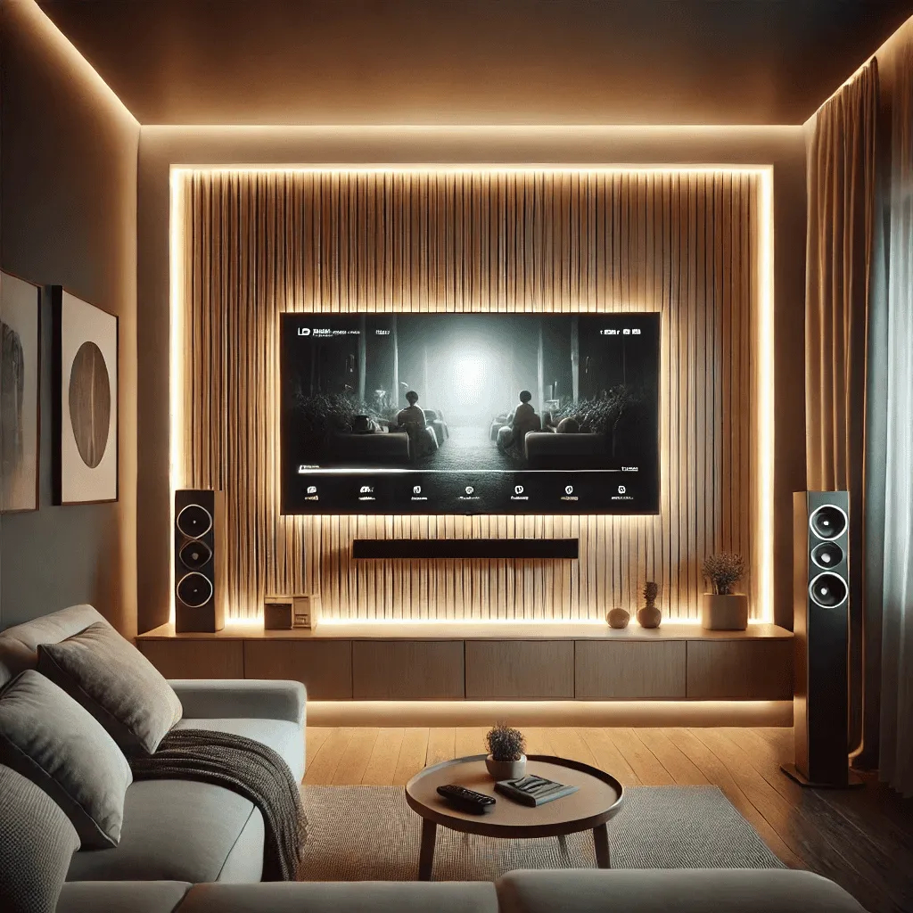 Benzile LED amplasate în spatele televizorului, de-a lungul unei polițe sau în tavanul fals din rigips reduc contrastul și adaugă profunzime spațiului. De asemenea, ajută ochii să nu fie expuși unor tranziții bruște între luminozitatea ecranului și întunericul din jur.