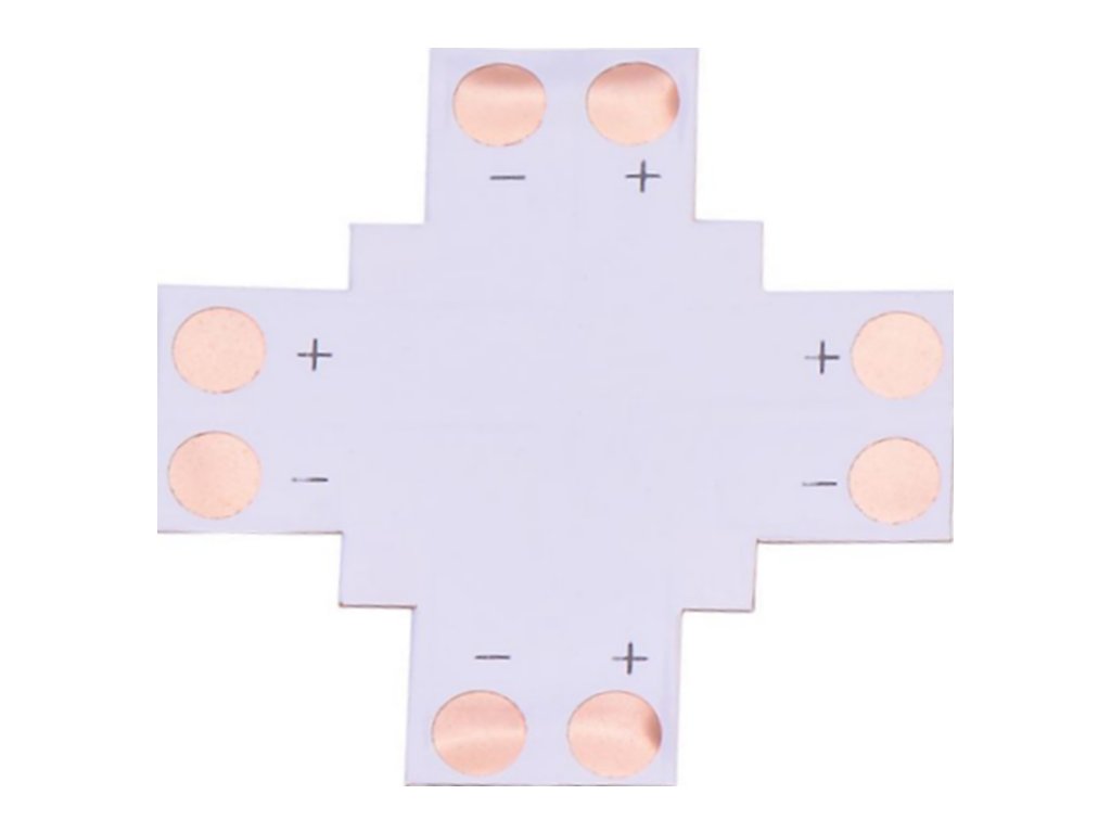 Conector pentru bandă LED monocoloră de 8 mm sau 10 mm în formă de X. Cuplajul este colțar și se poate lipi și se potrivește tuturor profilelor.