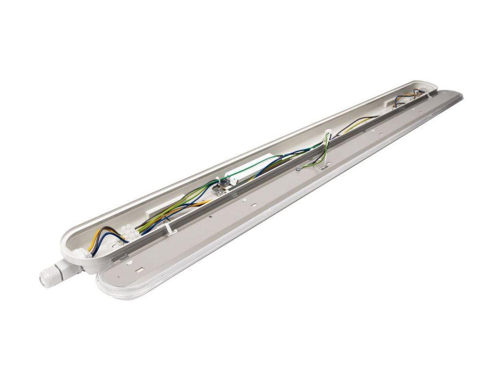 Această lampă LED premium etanșă la praf cu modul de urgență se remarcă prin eficiența sa ridicată de 150 lm/W, ceea ce înseamnă că, la o putere maximă de 36W, oferă un flux luminos de până la 5400 lm. Datorită acestui fapt, este un înlocuitor ideal pentru corpurile de iluminat tradiționale cu tuburi – oferind o luminozitate mai mare cu un consum mai mic.