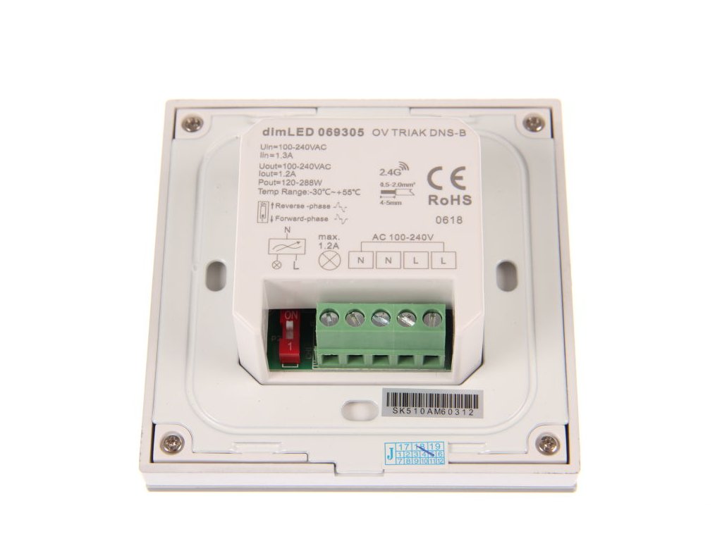 Variatorul triac dimLED de perete combină caracteristicile unui receptor și ale unui controler. Cu un singur controler, puteți controla 1 circuit, care poate consta din mai mulți receptori în mai multe locații. În același timp, iluminatul LED poate fi conectat direct la ieșirea variatorului, iar controlerul poate fi folosit și ca receptor. Prin urmare, controlerul poate fi folosit și pentru a controla alte serii de receptoare dimLED și, în același timp, pot fi împerecheate cu acesta alte modele de controlere dimLED.