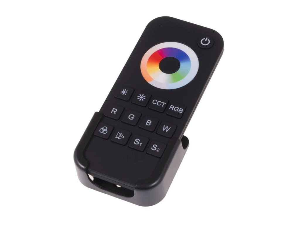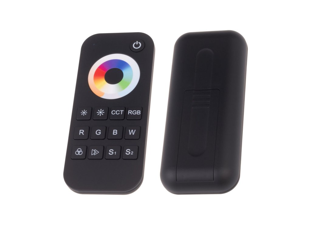 Telecomanda poate fi utilizată pentru a controla monocolore, CCT, RGB, RGBW și RGBCCT benzi LED. De exemplu, puteți controla atât benzi LED monocrome, cât și benzi LED RGB cu un singur controler, fără a fi nevoie să aveți 2 controleri diferiți. Receptorul poate fi ascuns (în spatele unui perete, gips-carton sau într-un dulap), nu este necesară vizibilitatea directă a receptorului pentru controler.