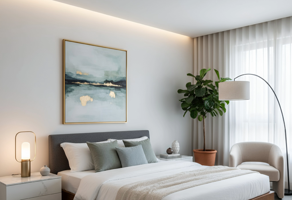 Scopul principal al iluminatului în dormitor este de a oferi suficientă lumină, dar niciodată într-un mod deranjant. Lumina ar trebui să fie moale, indirectă și ușor reglabilă în funcție de momentul zilei.