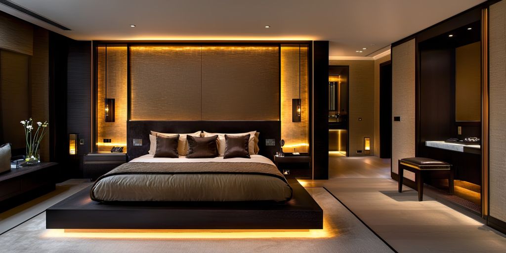 Un rol important îl joacă iluminatul ambiental, care completează atmosfera fără a produce orbire, de exemplu cu ajutorul benzilor LED biodinamice amplasate în spatele tăbliei patului, în plafoane suspendate sau în mobilier.