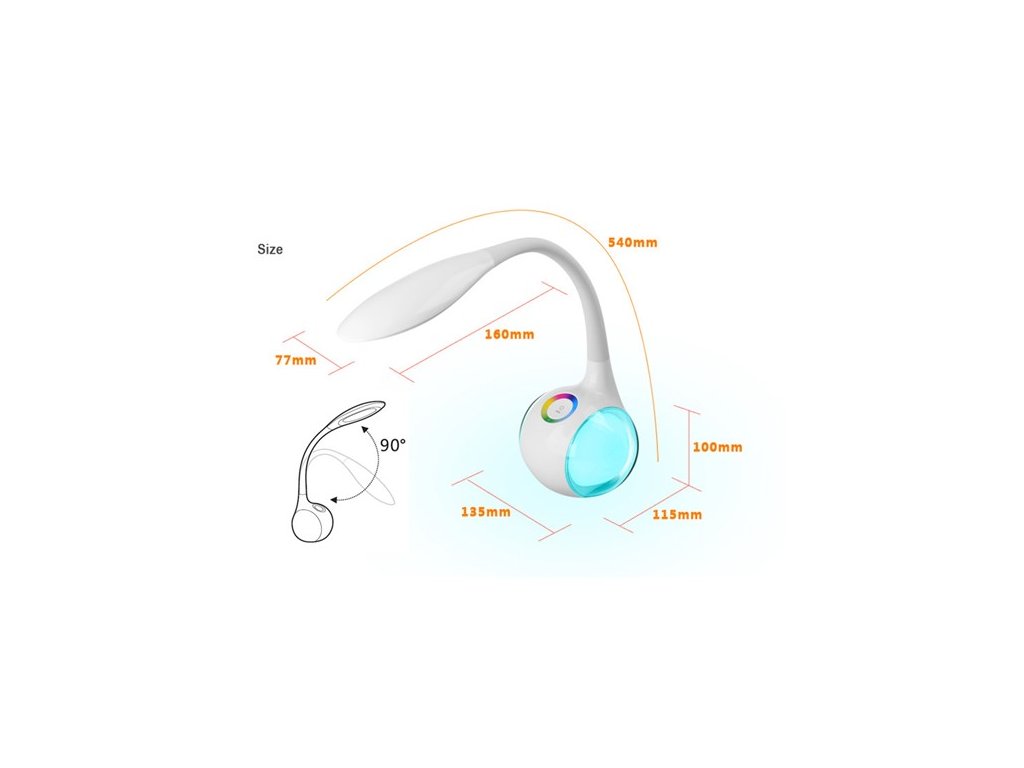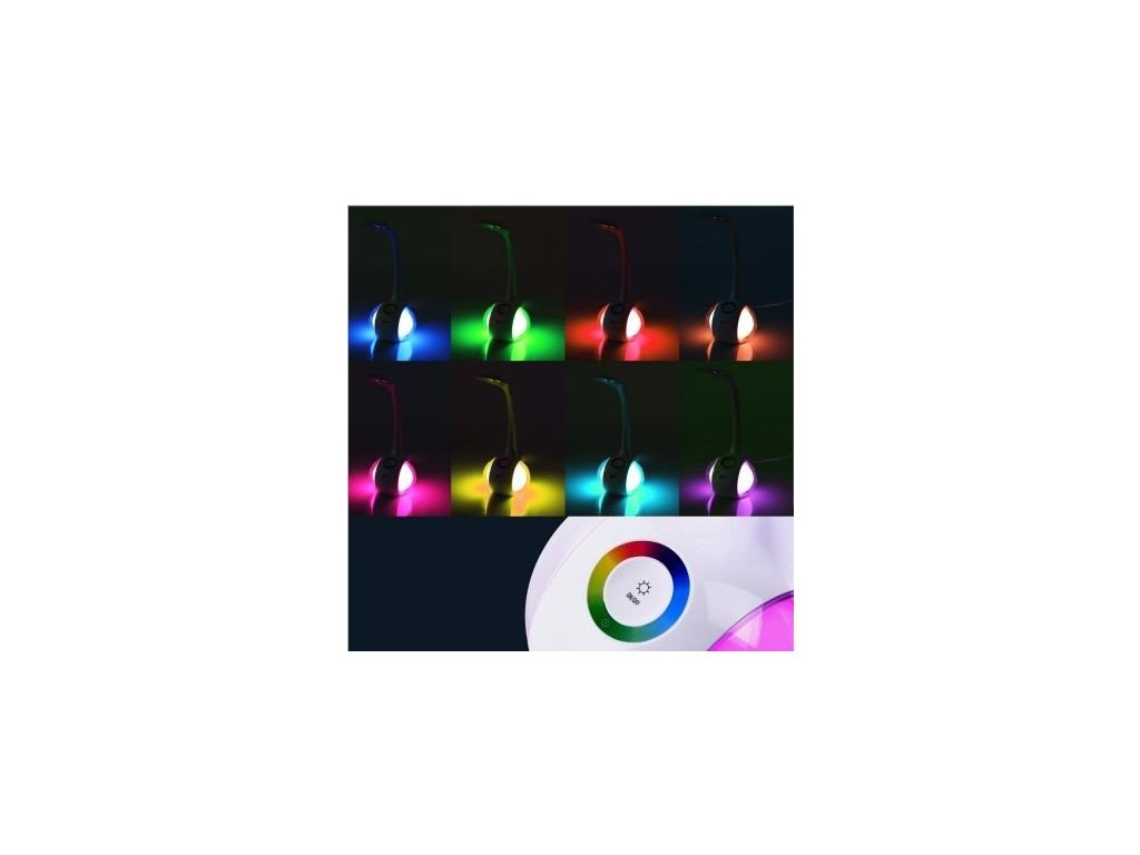 Lampa de birou cu LED de 6W este un accesoriu excelent pentru biroul dvs., fie acasă sau la birou. Este un design alb elegant. Lampa poate fi poziționată după cum doriți. Lampa este echipată cu un dimmer de noapte cu o gamă variabilă de culori (256 de culori). Apăsați culoarea de pe bara de culori pentru a selecta culoarea dorită. Lampa are 3 niveluri de luminozitate.