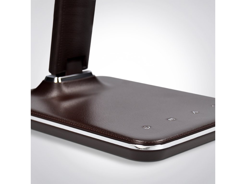 Această lampă de masă LED cu imitație de piele este potrivită în special pentru birou, unde formează un accesoriu de design unic. Datorită tehnologiei LED, are o putere de numai 9W, ceea ce este suficient pentru a ilumina zona de lucru. Oferim versiuni negre și maro.