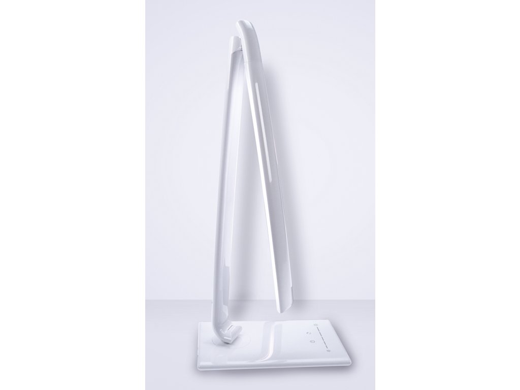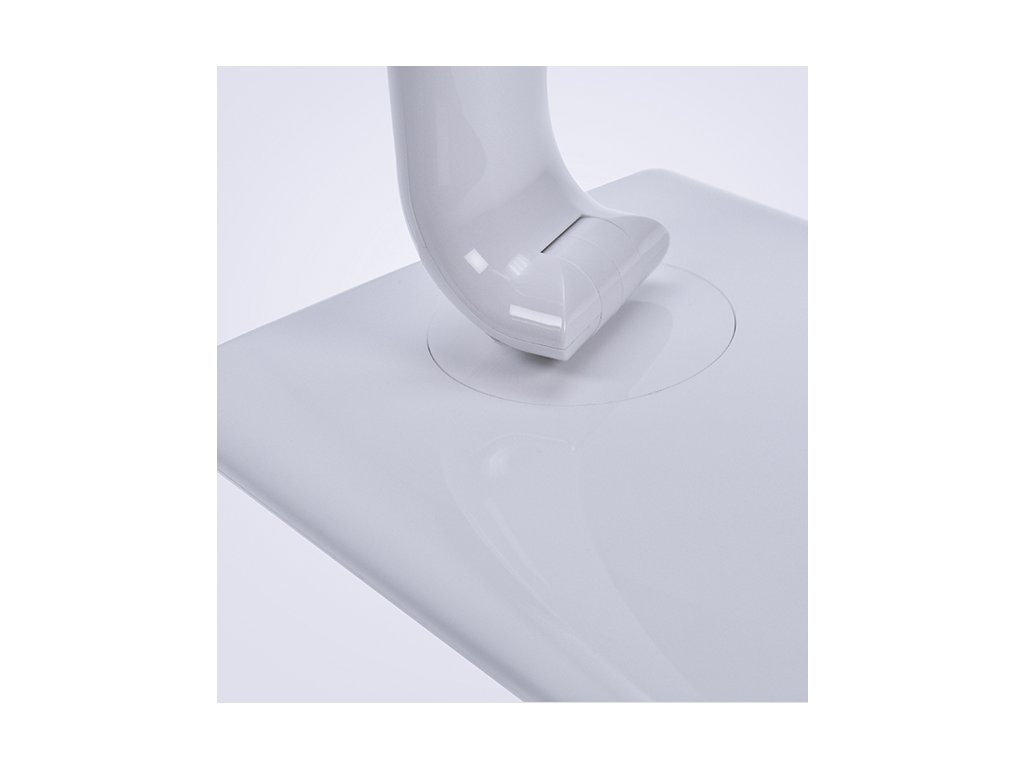 Baza antiderapantă oferă stabilitate, chiar și în timpul utilizării intense. Suprafața elegantă cu luciu alb se integrează ușor în orice interior. Lampa este alimentată de la rețeaua AC 230 V, iar cablul său de alimentare are o lungime de 140 cm. Dimensiunile lămpii sunt de 420 mm înălțime, 360 mm lățime și 125 mm adâncime, ceea ce o face compactă, dar suficient de puternică pentru toate nevoile dumneavoastră.
