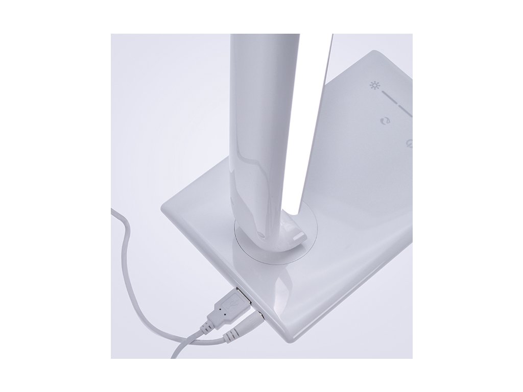 Lampă de birou LED albă lucioasă cu USB 12W dimabilă