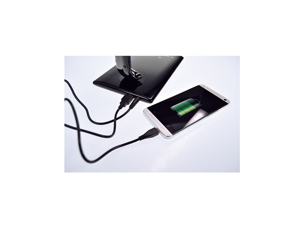 Această lampă oferă flexibilitate maximă datorită brațului flexibil, bazei rotative și capului înclinabil. Puterea lămpii este de 12 W, iar construcția sa din material ABS de înaltă calitate asigură o durată lungă de viață. În plus, include un port de alimentare USB (5 V, 1000 mA) care permite încărcarea comodă a telefoanelor mobile. Cablul USB este, de asemenea, inclus în pachet.