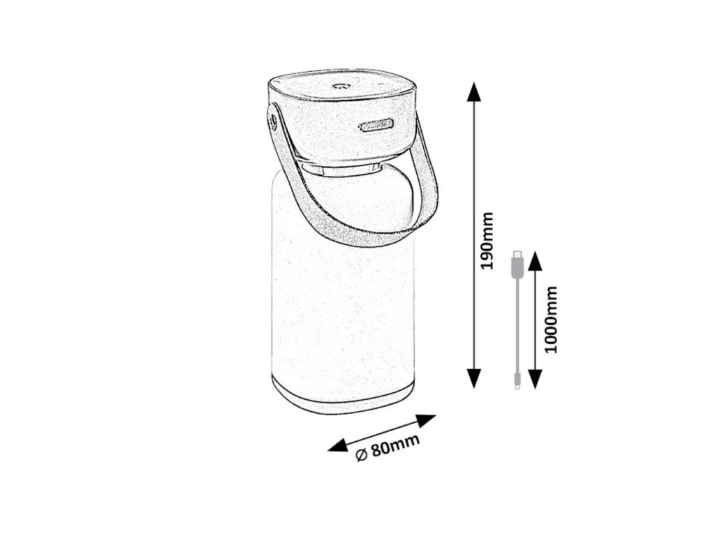 Dimensiunile lămpii sunt: diametrul bazei 80 mm și înălțimea 190 mm.