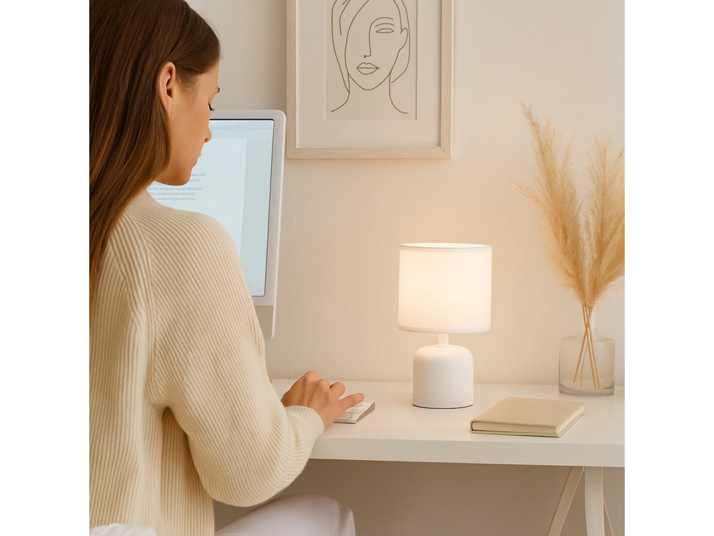 Lampa de masă albă Daphni este o completare elegantă pentru dormitor, living și alte părți ale interiorului. Cu designul său curat, este potrivită pentru noptieră, raft sau o măsuță laterală mai mică, unde va crea o atmosferă confortabilă și, de asemenea, va oferi suficientă lumină pentru citit sau relaxare.