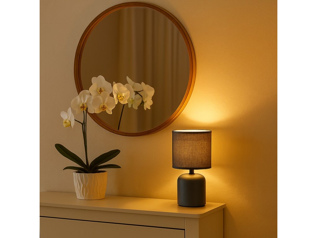 Lampa de masă albastră Daphni este un accesoriu elegant pentru dormitor, living și alte părți ale interiorului. Cu designul său curat, este potrivită pentru noptieră, raft sau o măsuță laterală mai mică, unde va crea o atmosferă confortabilă și, de asemenea, va oferi suficientă lumină pentru citit sau relaxare.