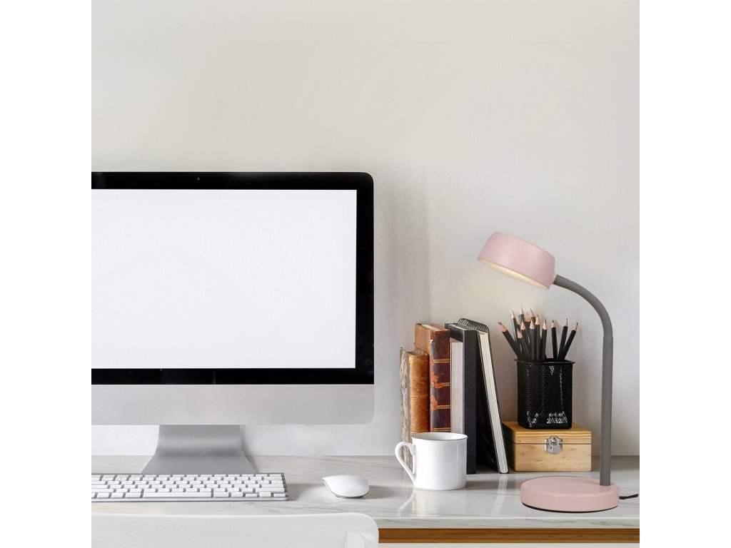 Lampa de birou LED roz elegantă Berry cu o putere de 4,5 W este o alegere excelentă pentru birou, camera copiilor și biroul de acasă. Oferă suficientă lumină pentru citit, scris sau lucrat pe laptop și, datorită culorii albe diurne a luminii, cu o temperatură de 4000 K, susține concentrarea și menține o atmosferă naturală în cameră.