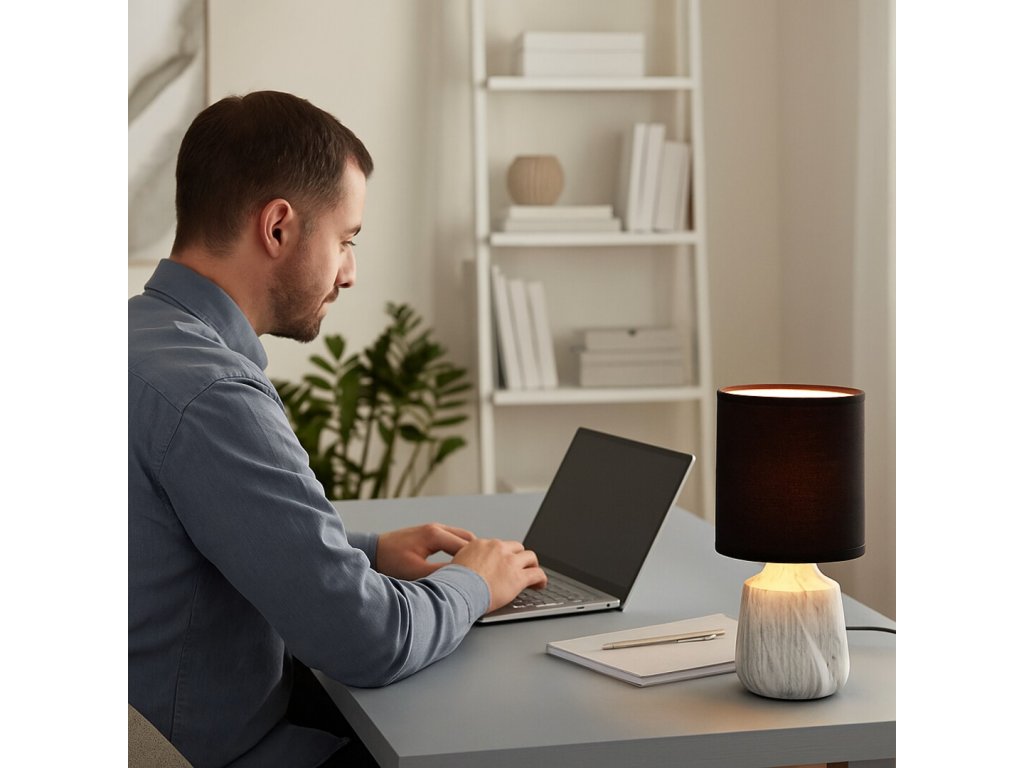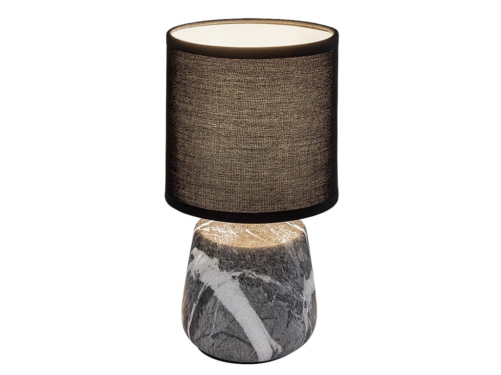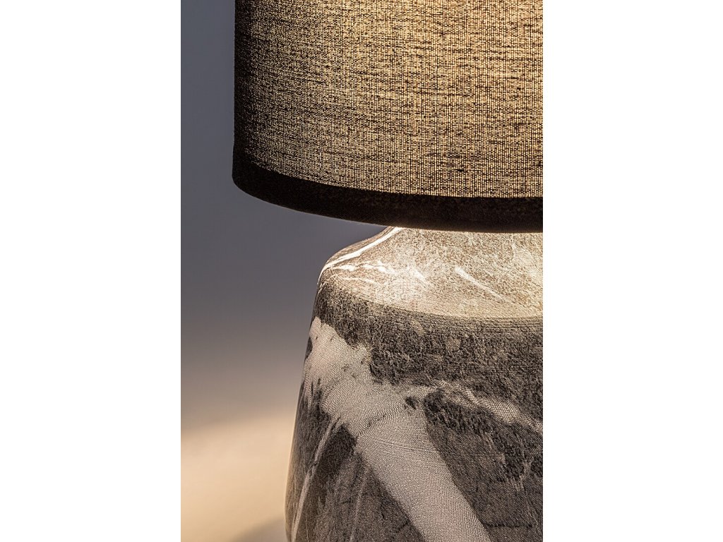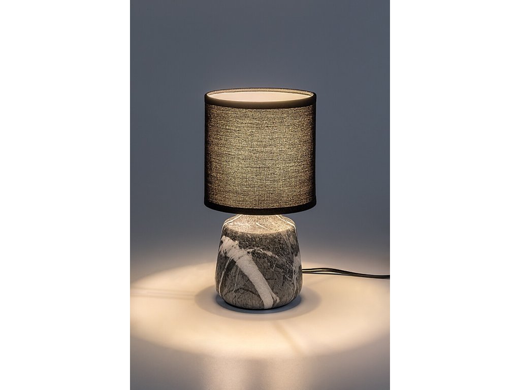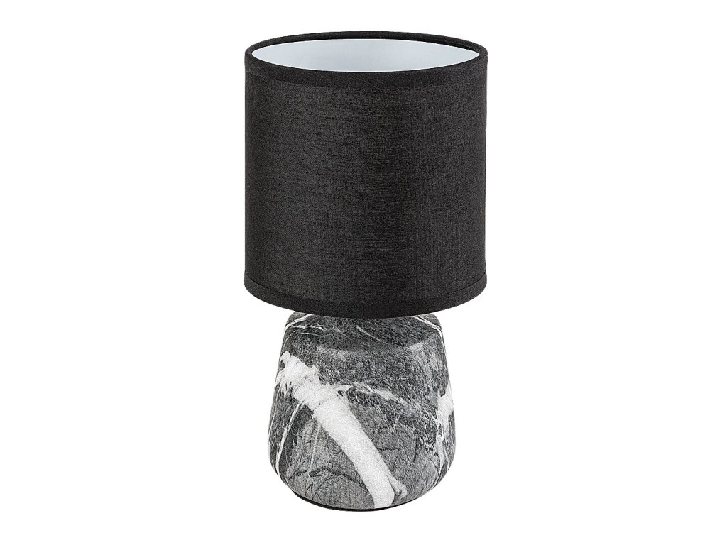 Lampa de masă Nalisa, cu o combinație de abajur negru textil și corp ceramic cu efect de marmură gri-alb, aduce o notă modernă și armonioasă în interior. Cu designul său elegant, este potrivită pentru dormitor și living, unde va crea o atmosferă confortabilă și, de asemenea, va servi drept lumină suplimentară practică.
