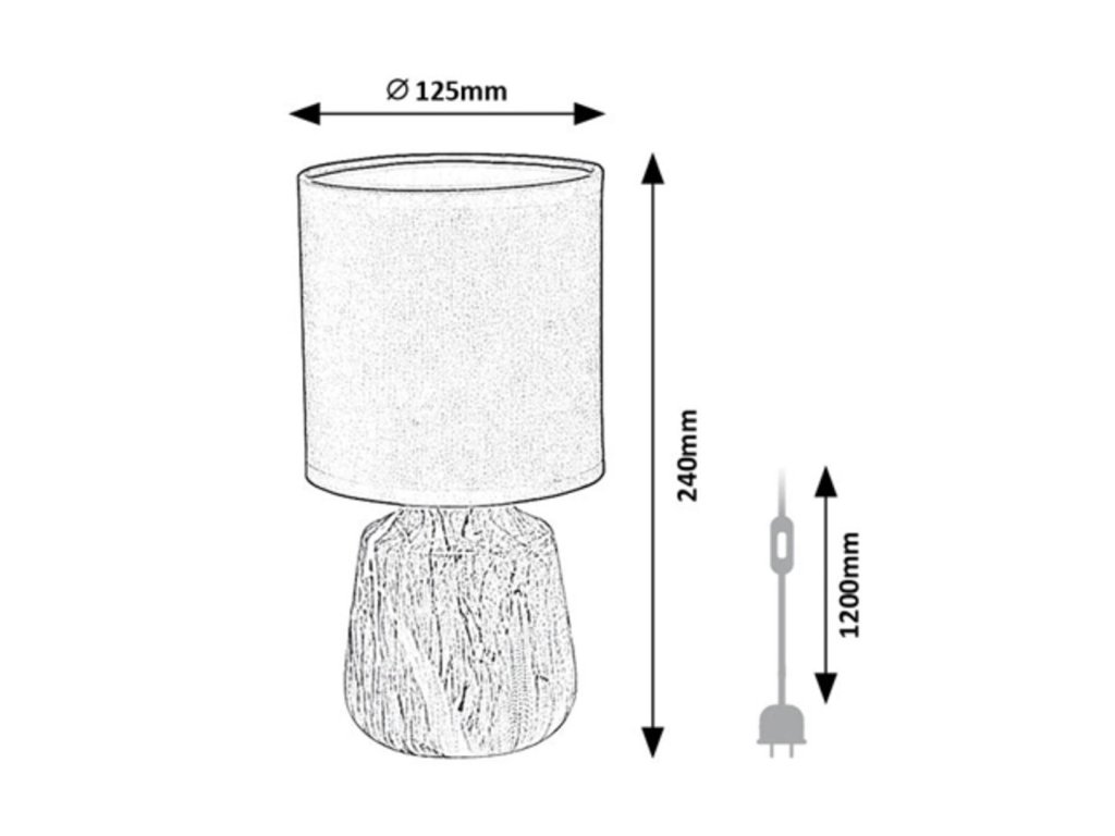 Include un cablu de alimentare negru de 1,2 metri lungime cu un întrerupător practic. Dimensiunile lămpii sunt de 240 mm înălțime și 125 mm în diametru, astfel încât este potrivită și pentru mese sau rafturi mai mici.