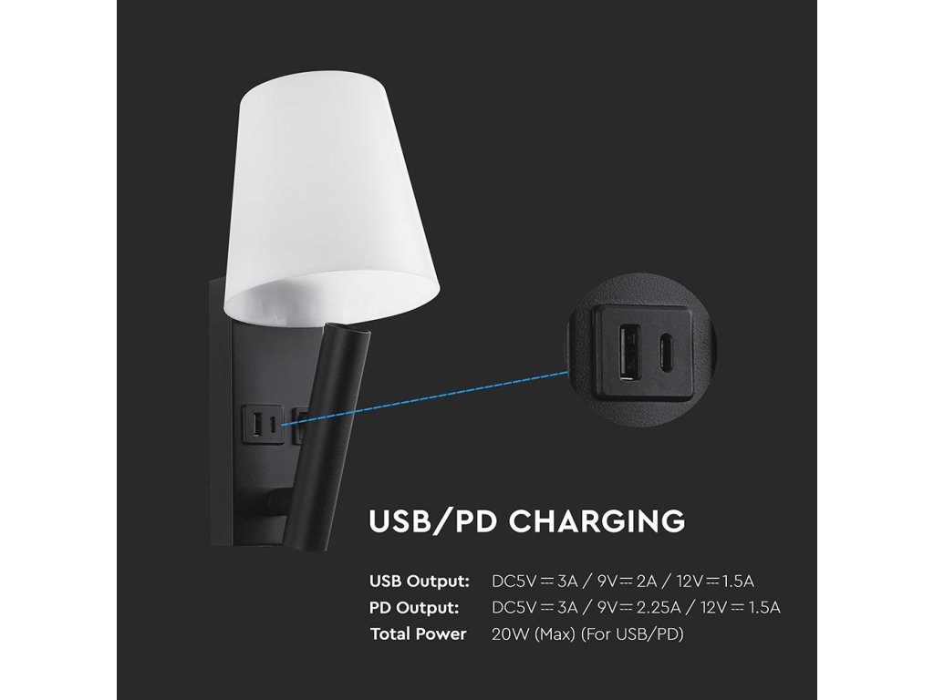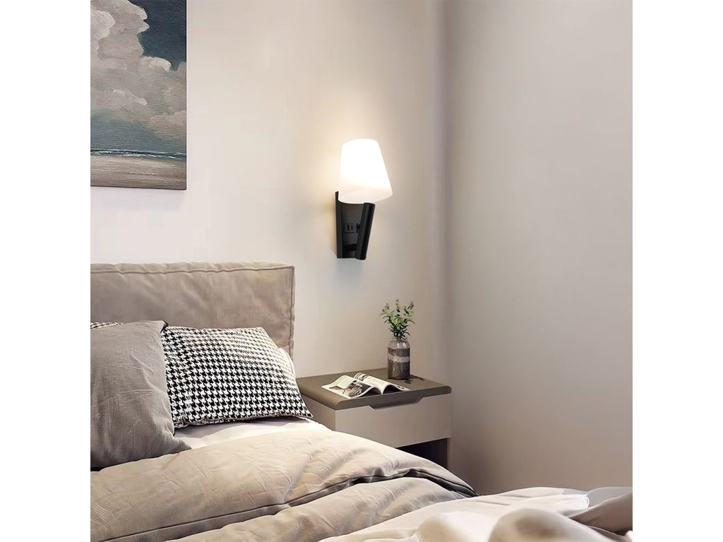 Lustr LED negru de perete cu încărcare USB/PD combină designul modern, funcționalitatea practică și performanța fiabilă într-o singură soluție elegantă. Datorită cipurilor LED CREE de înaltă calitate și tehnologiei SMD, oferă o ieșire de lumină stabilă, o durată lungă de viață și o fiabilitate ridicată, fiind astfel o alegere ideală lângă pat în dormitor, în camere de hotel, buticuri și interioare moderne.