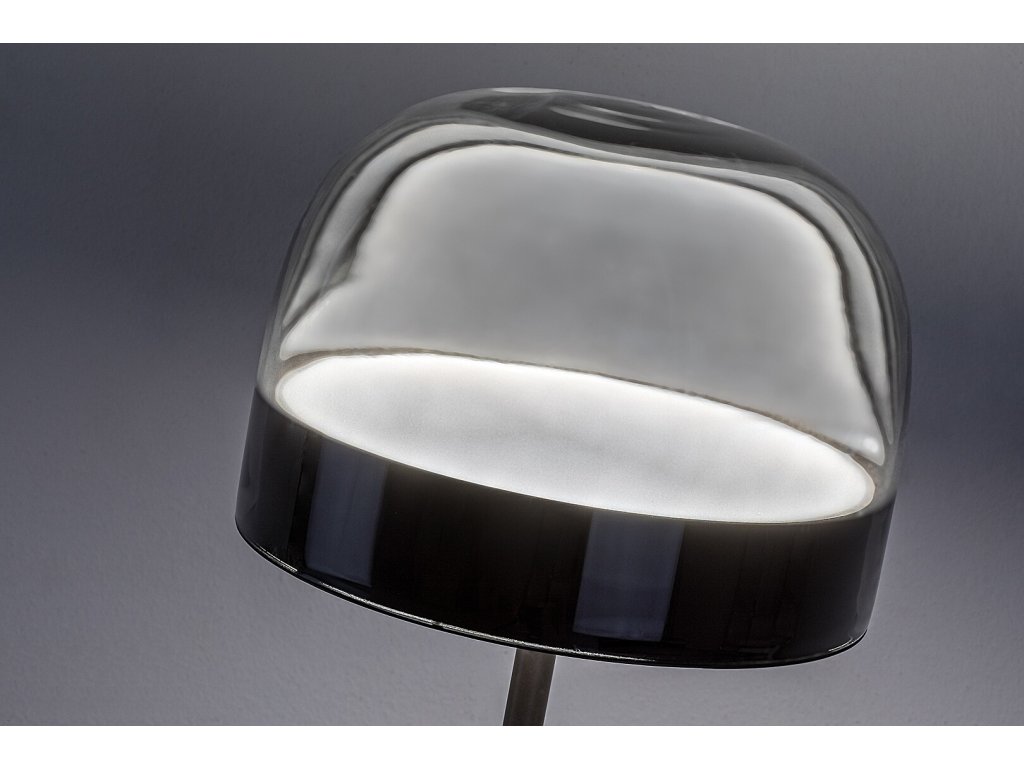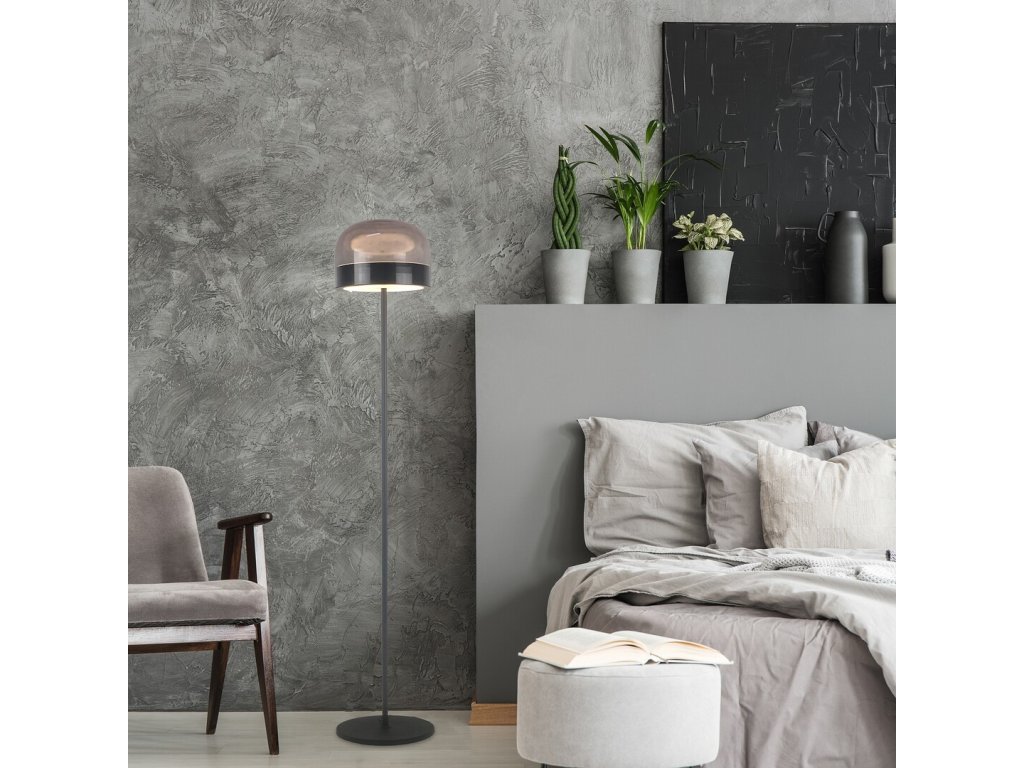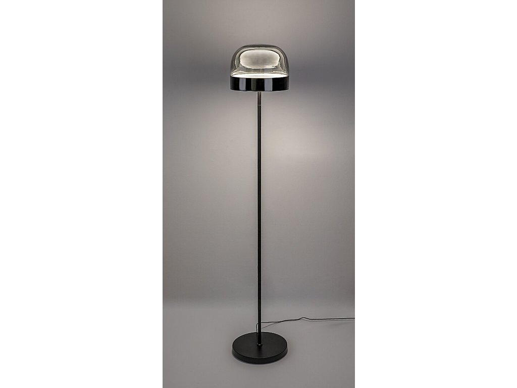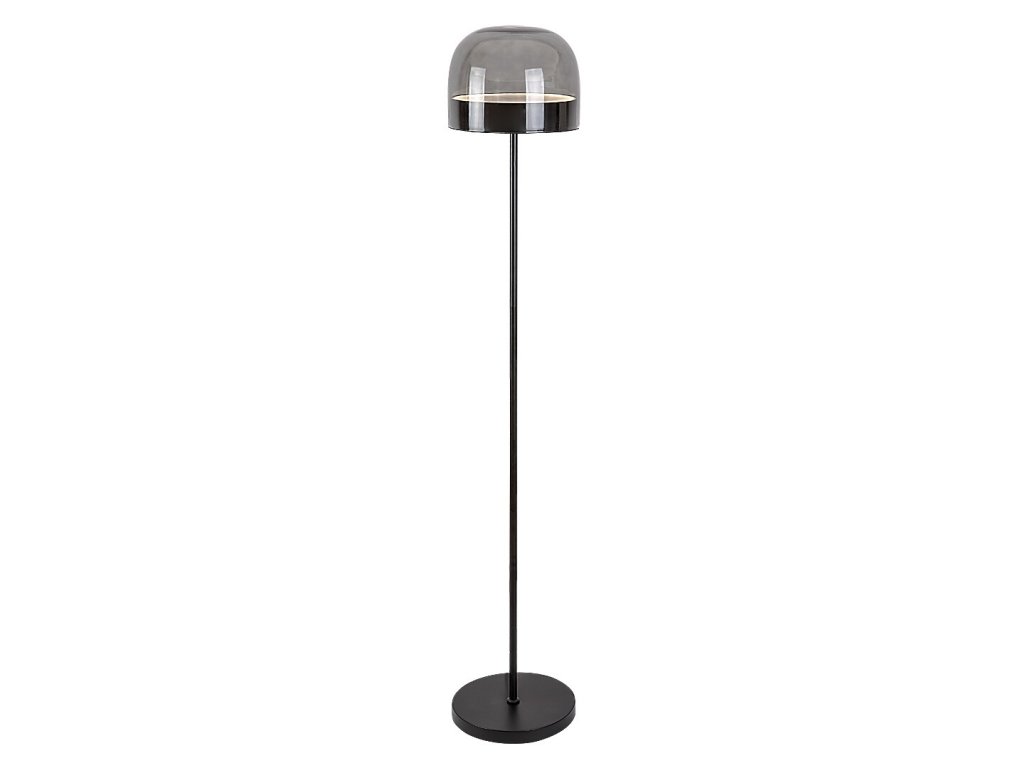 Construcția lămpii este realizată din metal rezistent, de culoare neagră, și este completată de un abajur din sticlă fumurie, care direcționează lumina în jos și, în același timp, luminează ușor împrejurimile. Baza mare și rotundă asigură stabilitate, astfel încât puteți plasa în siguranță lampa lângă o canapea, un fotoliu sau într-un colț al camerei.
