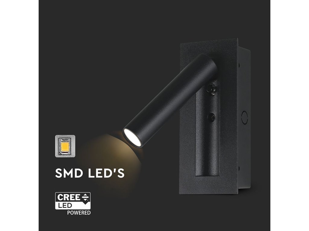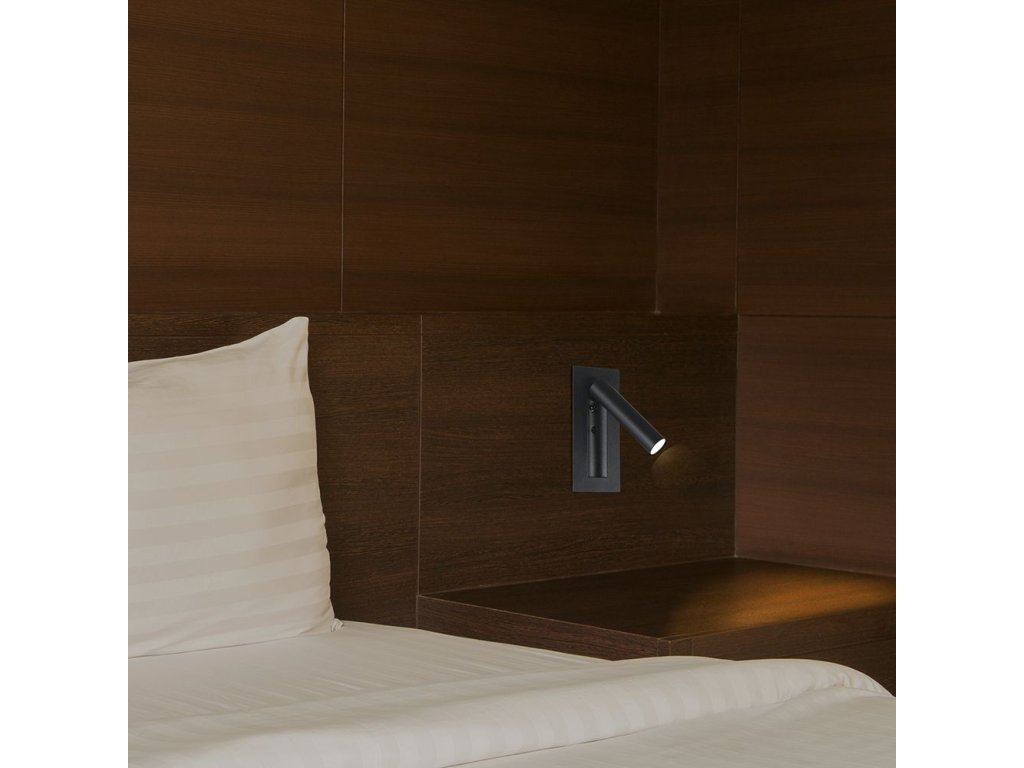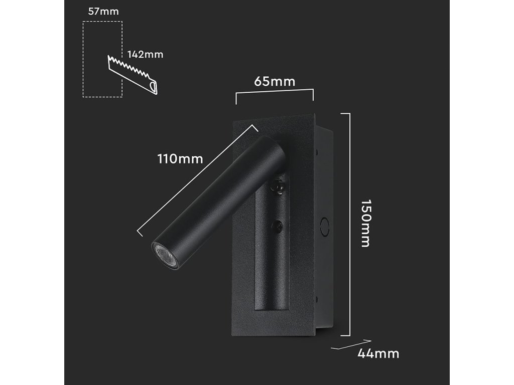 Lustra se instalează prin încastrare într-un orificiu pregătit de 57 × 142 mm, datorită căruia pare foarte discretă și se integrează curat în designul peretelui. Finisajul negru subliniază aspectul modern și se combină ușor cu majoritatea stilurilor de interior. Controlul este realizat direct pe corpul lustrei cu ajutorul unui buton, astfel încât aprindeți și stingeți lumina confortabil cu o singură mână.