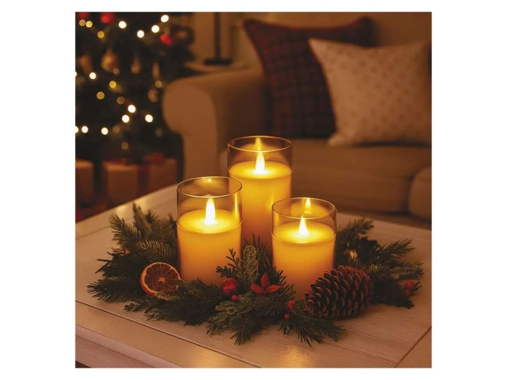 Set de trei lumânări LED într-un design elegant din sticlă creează o lumină plăcută și caldă cu o flacără pâlpâitoare realistă. Datorită mecanismului magnetic, flacăra pare foarte naturală, dar fără riscul de foc deschis, fum sau supraîncălzire, făcând lumânările ideale chiar și pentru casele cu copii sau animale de companie. Fiecare lumânare are un temporizator încorporat, care funcționează automat timp de 6 ore și apoi se oprește timp de 18 ore. Alimentarea cu două baterii AA în fiecare lumânare permite amplasarea oriunde, fără cabluri, fie pe masă, pe un raft, pe un pervaz sau în baie pentru o atmosferă relaxantă. Bateriile nu sunt incluse în pachet.