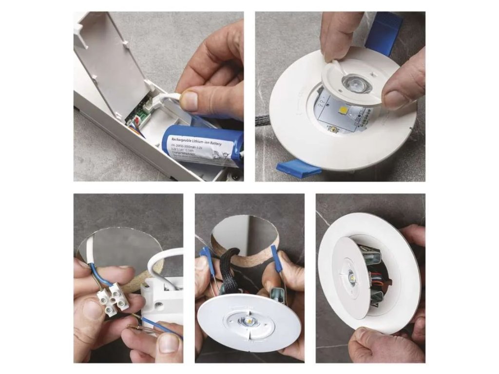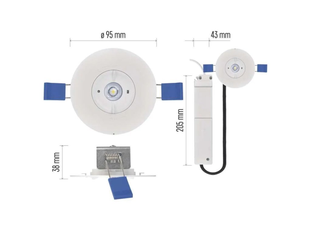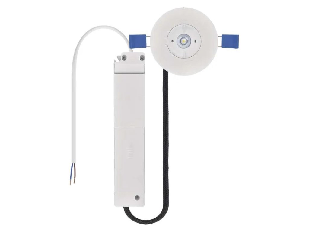Corpul de iluminat LED de urgență încastrat cu o putere de 2 W este conceput pentru iluminarea sigură a căilor de evacuare și a spațiilor în cazul unei pene de curent. În modul de urgență, funcționează cu o putere de 2,4 W și atinge un flux luminos de 300 lm. Culoarea albă rece a luminii cu o temperatură de 6500 K asigură o vizibilitate clară și ușor de recunoscut în situații de criză.