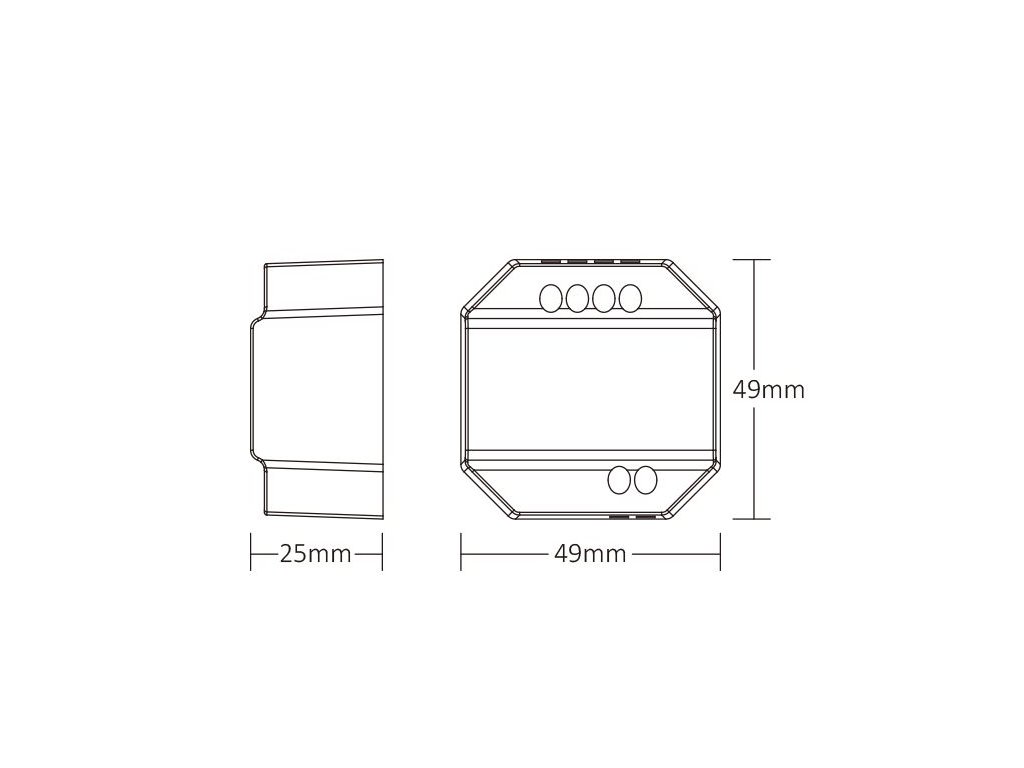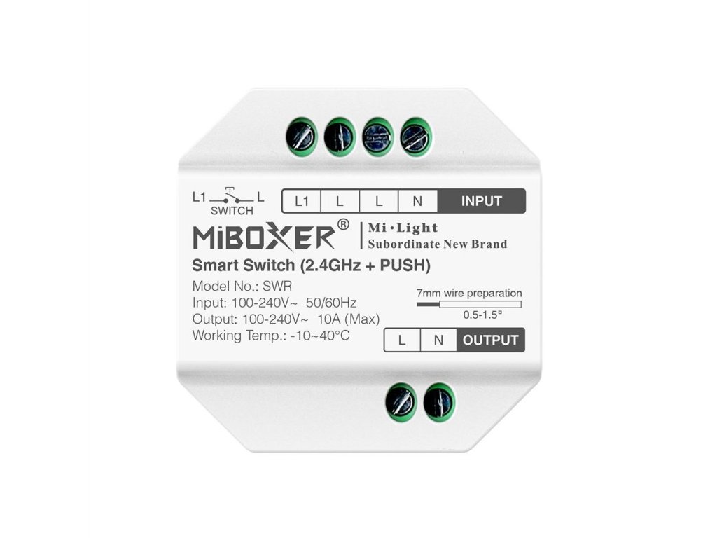 Întrerupătorul Mi-Light / MiBoxer permite pornirea și oprirea dispozitivelor la 230V - corpuri de iluminat cu LED, becuri clasice, corpuri de iluminat cu halogen, corpuri de încălzire, ventilatoare, șeminee electrice sau alte aparate electrocasnice.