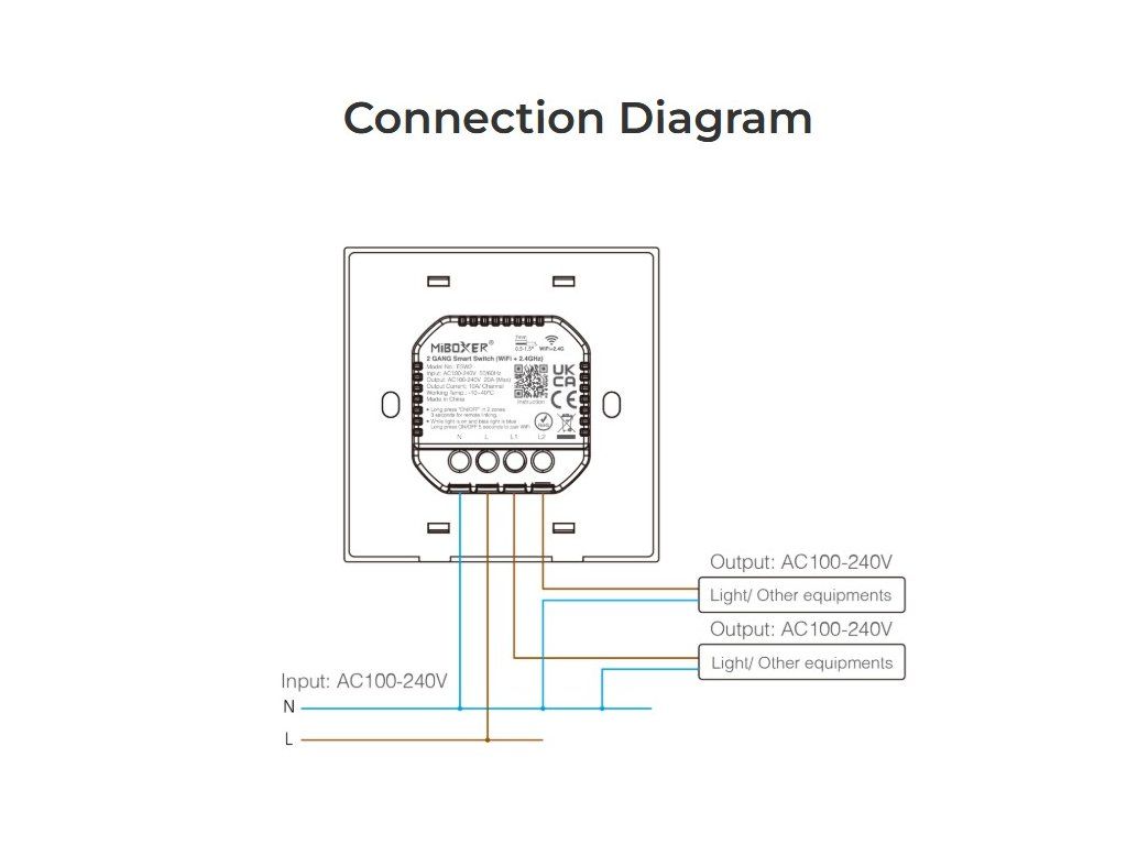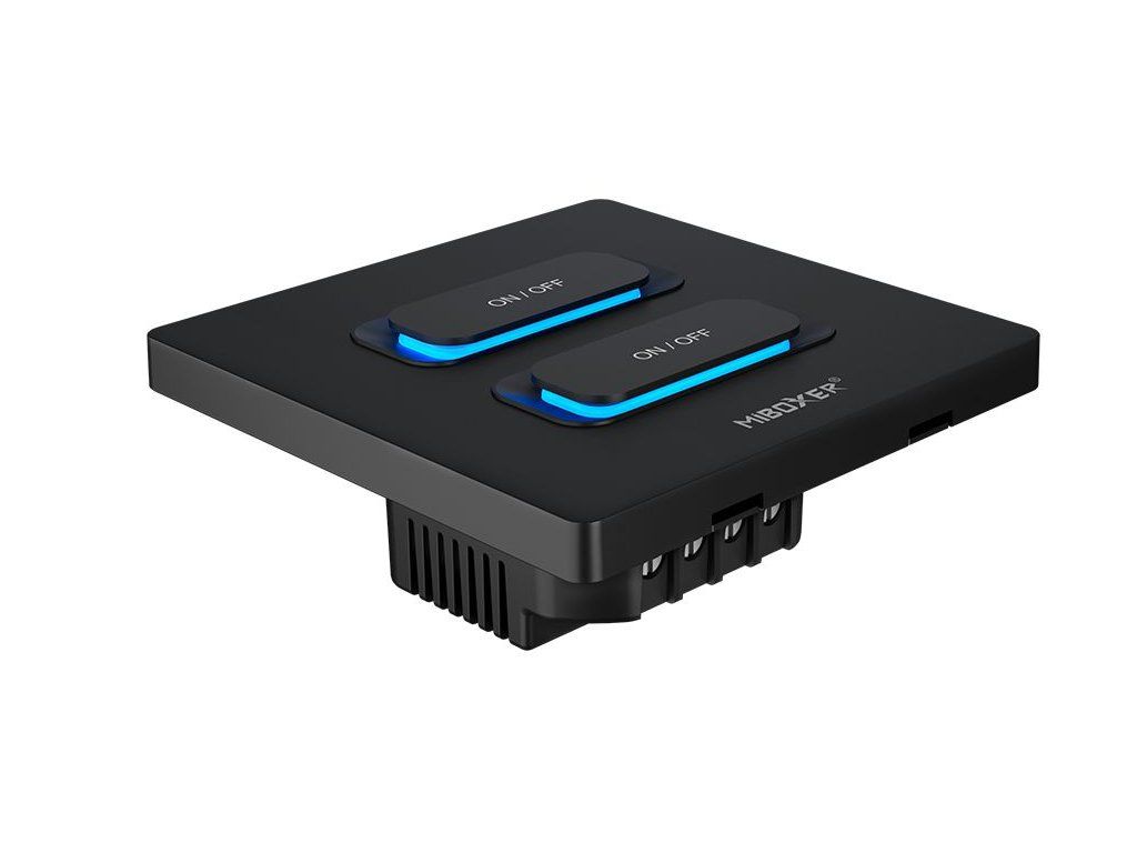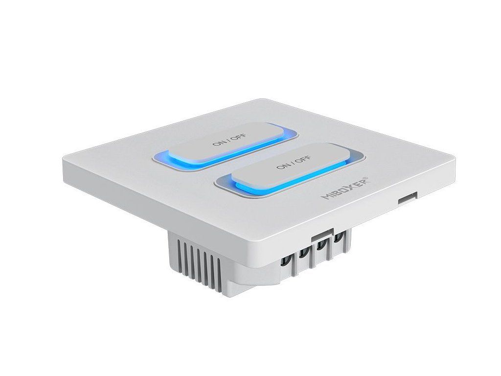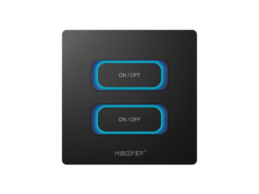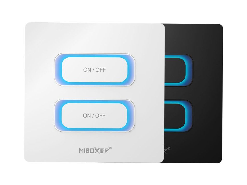 Comutatorul de perete MiBoxer WiFi + RF (2 canale) permite controlul independent al două circuite de iluminat sau alte aparate electrice, cum ar fi ventilatoare, umidificatoare sau alte aparate alimentate la 230 V. Combină tehnologia WiFi și 2,4 GHz RF, făcându-l potrivit atât pentru instalații clasice, cât și pentru integrarea într-o casă inteligentă.
