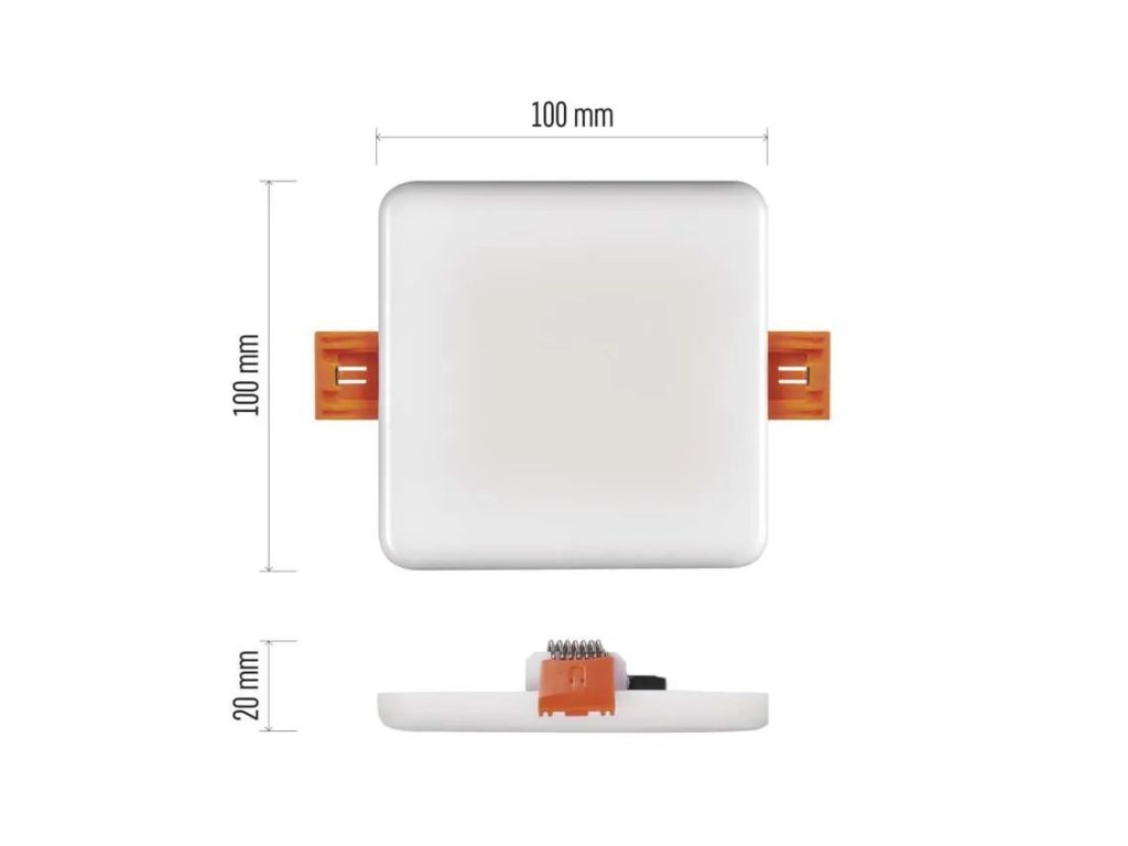 Panou LED pătrat elegant cu o putere de 8W și o dimensiune de 100 x 100 mm este potrivit pentru montarea pe tavan sau pe perete. Datorită gradului său de protecție IP65 mai ridicat, este perfect pentru băi sau zone exterioare. Face parte din categoria corpurilor de iluminat încastrate, vine cu arcuri pentru fixarea panoului. Este necesară o gaură de montare de 80 x 80 mm în tavan. Acest panou LED economisește energie electrică și vă luminează casa în același timp.
