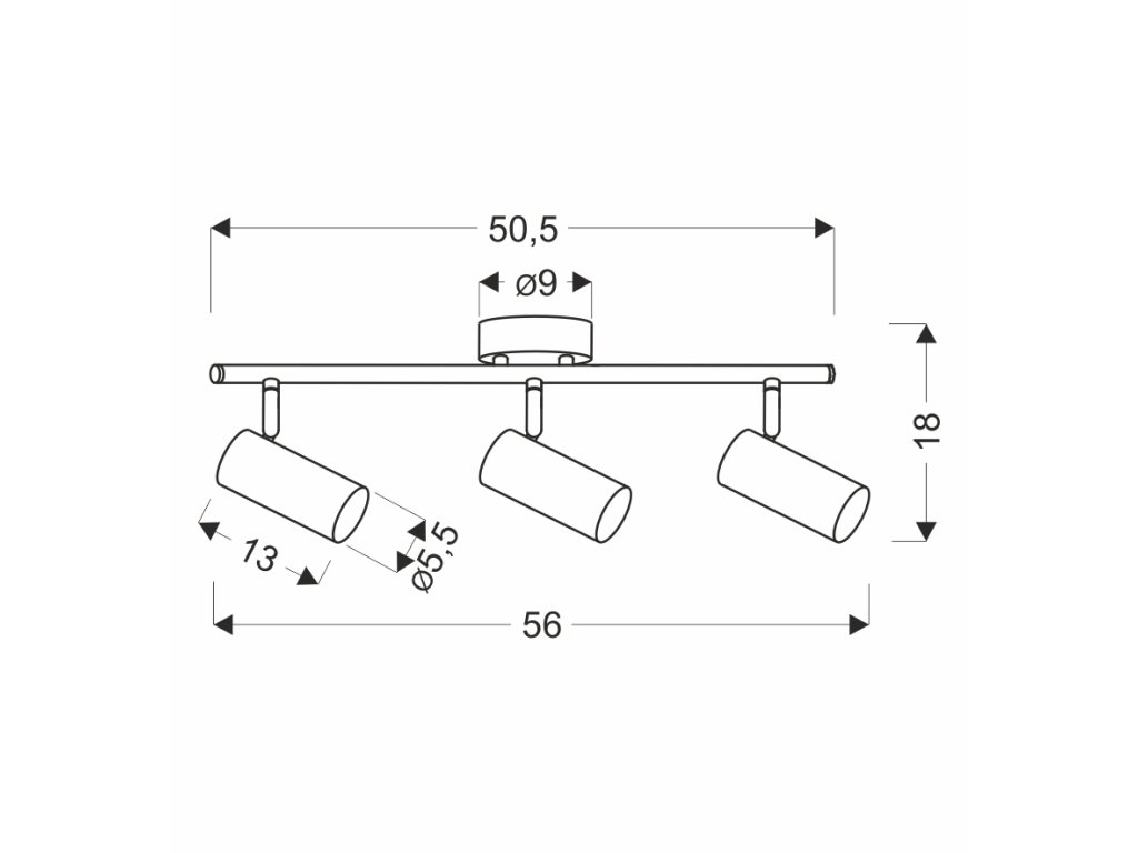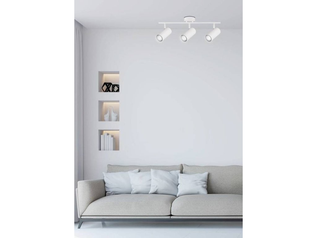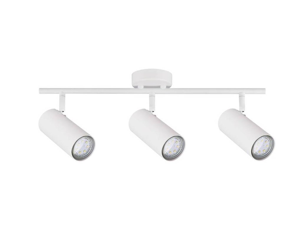 Spot LED cu socluri 3x GU10 cu putere maximă de 15W. Dimensiunea acestui corp de iluminat este de 560x180x90mm. Avantajul este posibilitatea de a regla înclinarea umbrelor în direcții diferite și de a direcționa astfel lumina exact acolo unde aveți nevoie de ea. Corpul de iluminat este fabricat din metal de culoare albă.