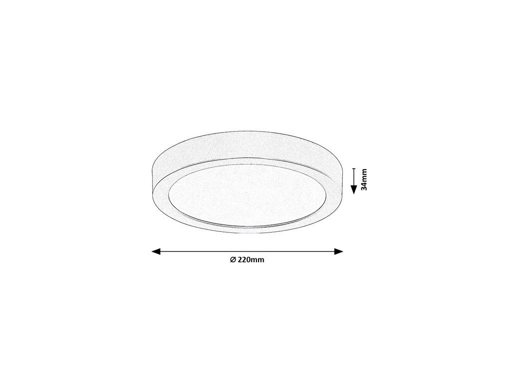 Dimensiunile corpului de iluminat sunt de 220 mm în diametru și 34 mm înălțime.