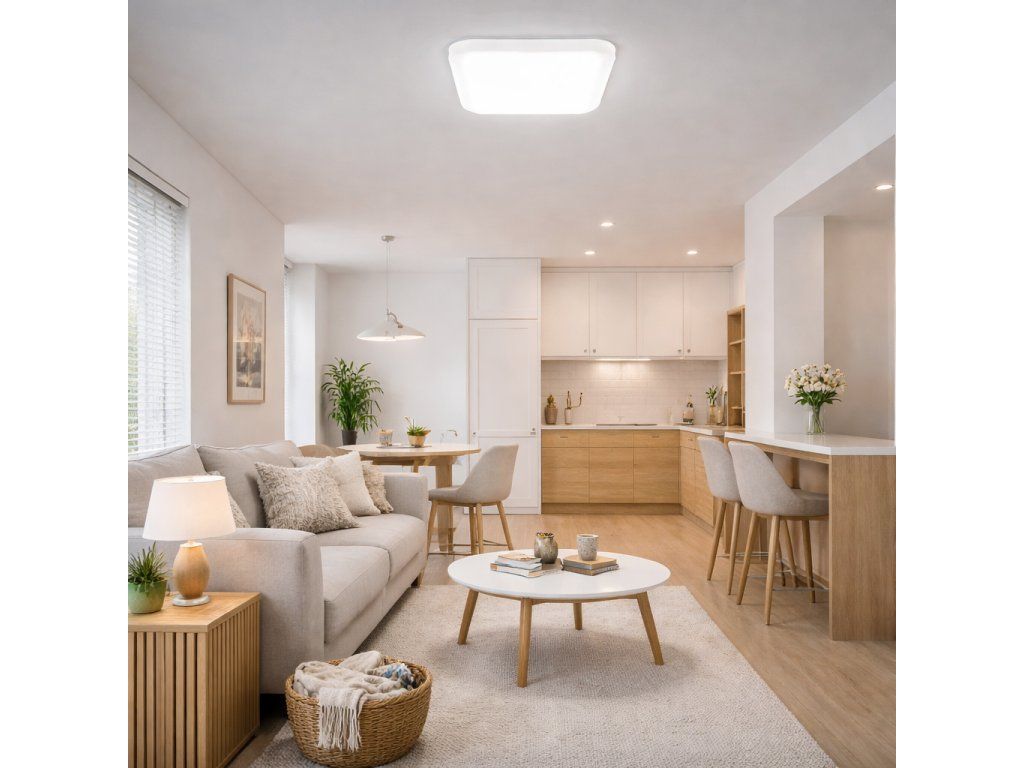 Elegant corp de iluminat LED pătrat cu o putere de 18W și o dimensiune de 25 x 25cm este adaptat pentru montarea direct pe tavan. Acesta face parte din categoria corpurilor de iluminat atașate, ceea ce se reflectă și în designul său. Instalare foarte ușoară suporturi de montarecare acoperă șuruburile și face ca designul corpului de iluminat să fie curat. Pur și simplu faceți găuri în tavan, fixați cu dibluri și înșurubați. Tensiunea de intrare este de 230V. Se caracterizează prin rezistență sporită la apă datorită protecției IP44.