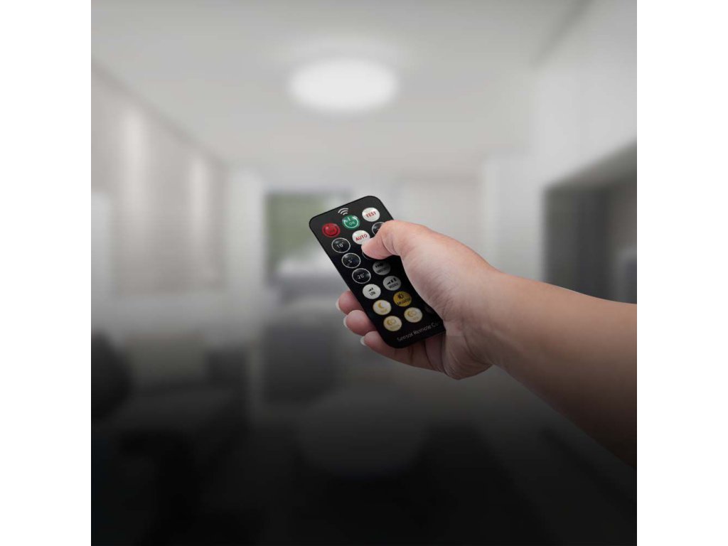 Pachetul include o telecomandă, astfel încât să puteți controla lampa din confortul canapelei dumneavoastră. De exemplu, puteți utiliza butonul rotativ pentru a seta sensibilitate la lumina zilei (5 lux, 30 lux, 100 lux, 200 lux), raza de detectare (1-2m, 2-3m, 4-5m), timpul de comutare (10s, 30s, 5min, 10min, 20min, 30min) și modul de fotografiere automată.