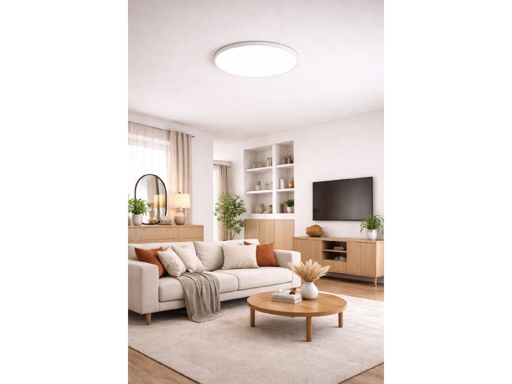 Panou LED CCT circular elegant, cu o putere de 50W și un diametru de 60cm , este potrivit pentru montarea direct pe perete sau tavan. Acesta face parte din categoria corpurilor de iluminat atașate, ceea ce se reflectă și în designul său. Instalare foarte ușoară suporturi de montarecare acoperă șuruburile ceea ce face ca panoul să aibă un design curat. Pur și simplu faceți o gaură în tavan, introduceți un diblu și înșurubați-l. Tensiunea de intrare este de 230 V. Acest panou LED economisește energie electrică în timp ce vă iluminează casa, holul sau biroul.