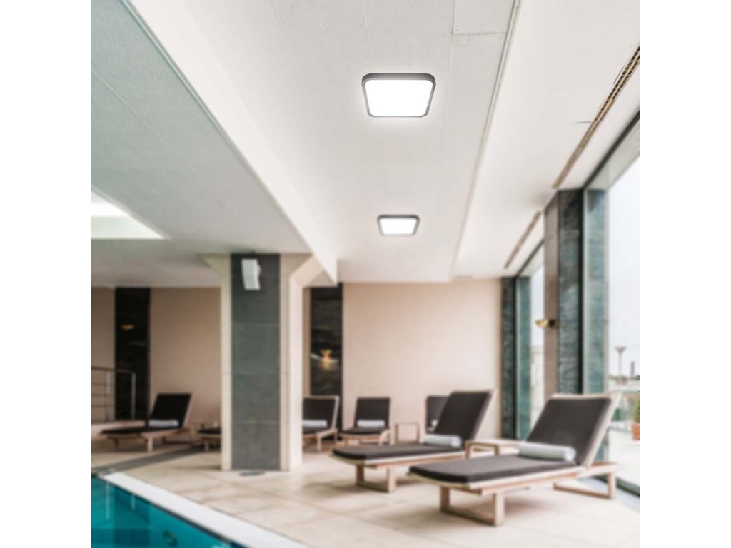 Elegant corp de iluminat LED pătrat cu o putere de 18W și dimensiuni de 29,5 x 29,5 cm este proiectat pentru a fi montat direct pe tavan. Acesta face parte din categoria corpurilor de iluminat atașate, ceea ce se reflectă și în designul său. Instalare foarte ușoară suporturi de montarecare acoperă șuruburile și face ca designul corpului de iluminat să fie curat. Pur și simplu faceți găuri în tavan, fixați cu dibluri și înșurubați. Tensiunea de intrare este de 230V. Se caracterizează prin rezistență sporită la apă datorită protecției IP44.