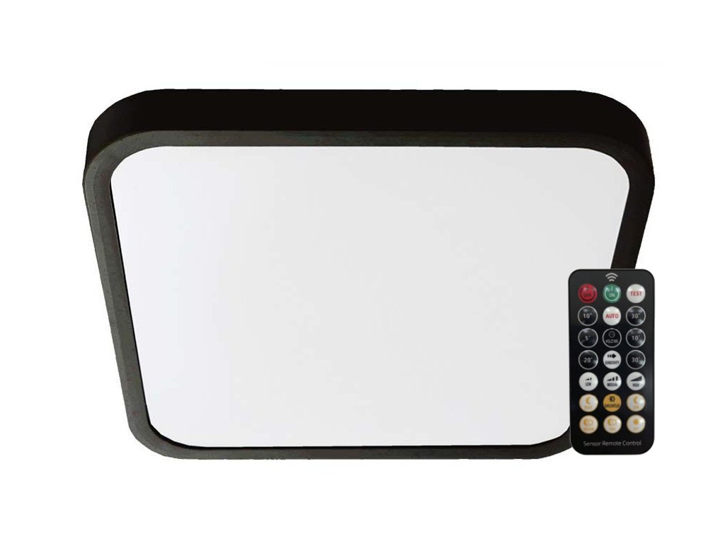 Plafonieră LED neagră pătrată 295x295mm 18W IP44 cu senzor de mișcare MW și telecomandă