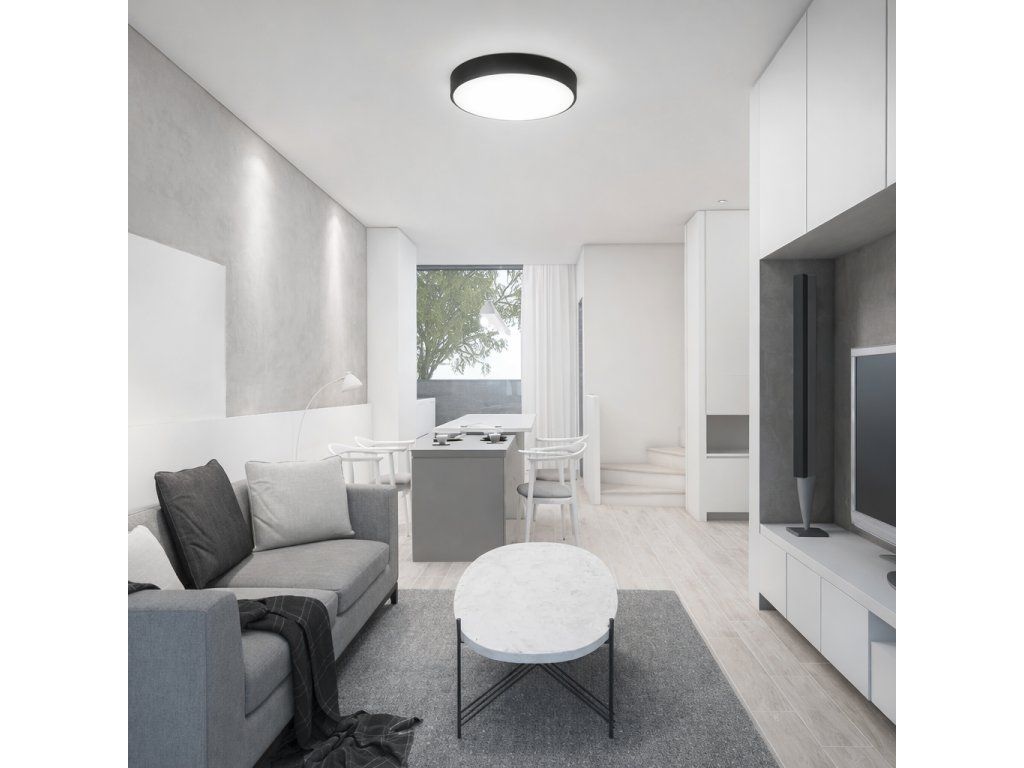 Corp de iluminat LED circular elegant, cu o putere de 24W și un diametru de 29,5 cm , este proiectat pentru montarea direct pe tavan. Acesta face parte din categoria corpurilor de iluminat atașate, ceea ce se reflectă și în designul său. Instalare foarte ușoară suporturi de montarecare acoperă șuruburile și face ca designul corpului de iluminat să fie curat. Pur și simplu faceți găuri în tavan, fixați cu dibluri și înșurubați. Tensiunea de intrare este de 230V. Se caracterizează prin rezistență sporită la apă datorită protecției IP44.
