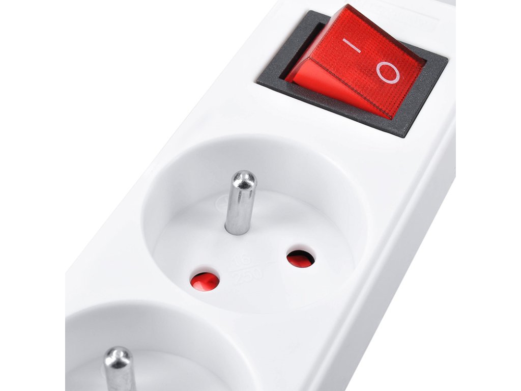 Cablu prelungitor alb, comutator, 3 prize, 1,5m