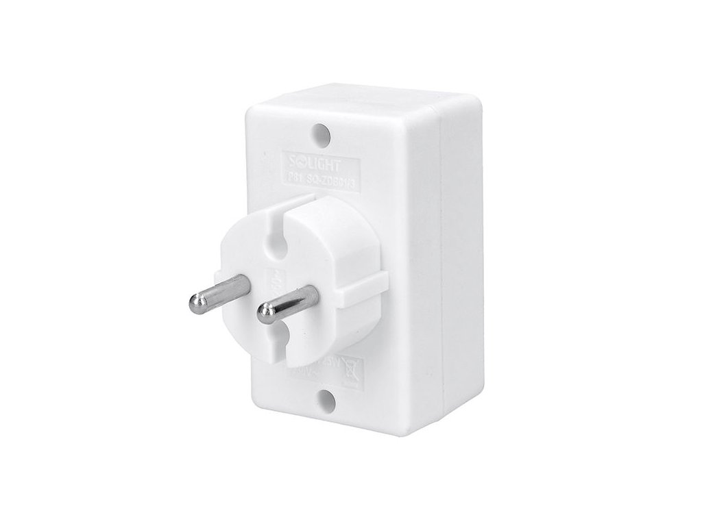 Acest adaptor simplu este folosit pentru a conecta două aparate neîmpământate cu cabluri de alimentare cu o priză plată.