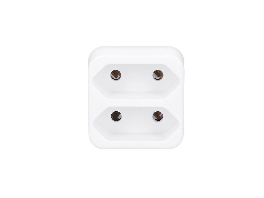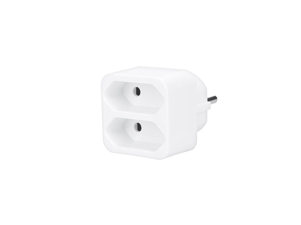 Acest adaptor simplu este folosit pentru a conecta două aparate neîmpământate cu cabluri de alimentare cu o priză plată.
