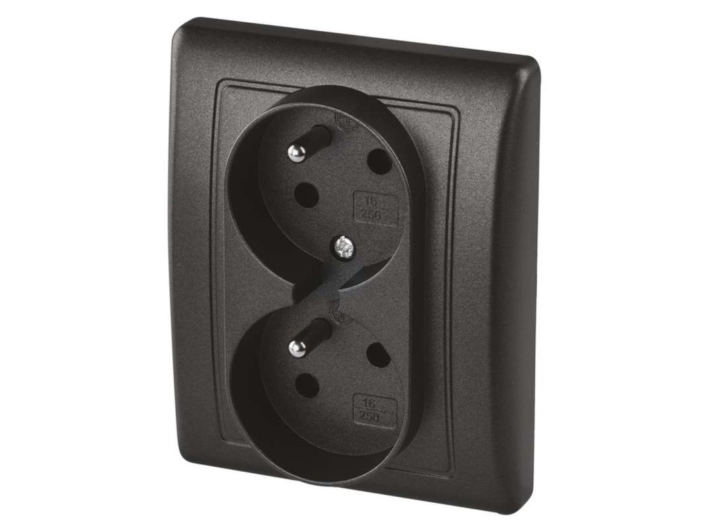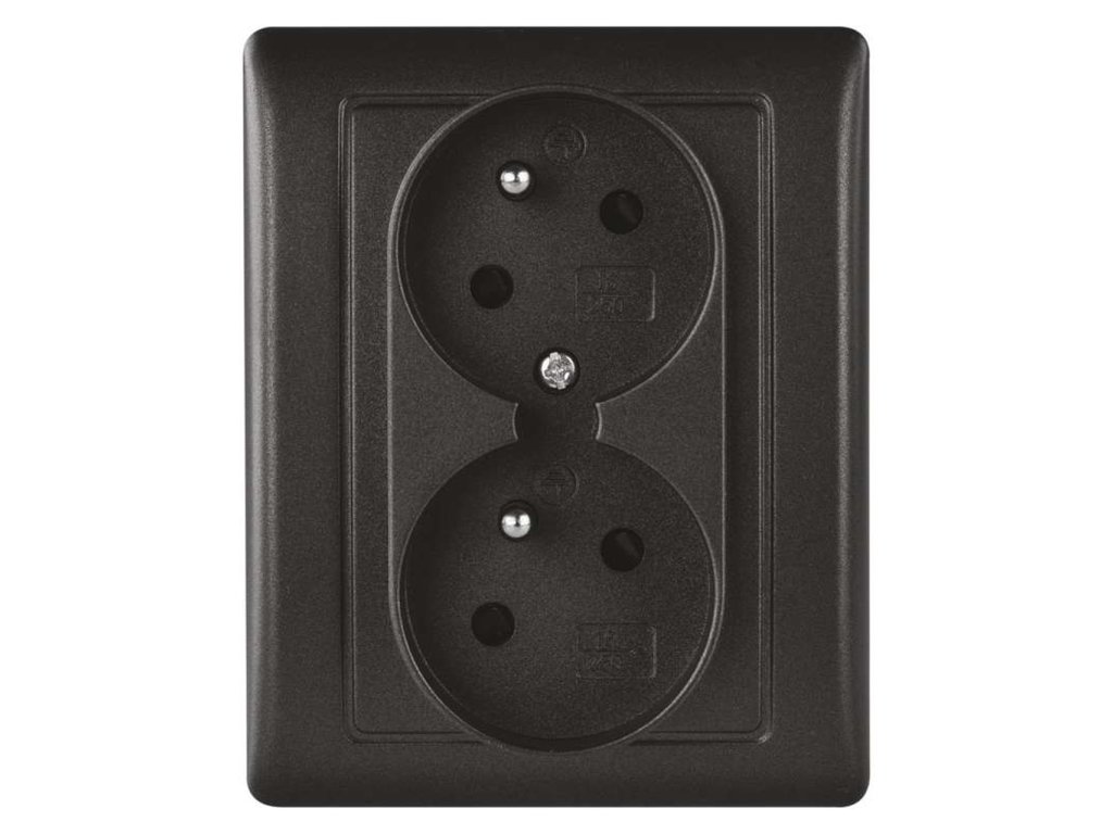 Priză dublă cu știft de protecție și ecrane pentru copii. Culoare antracit.