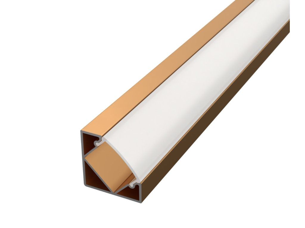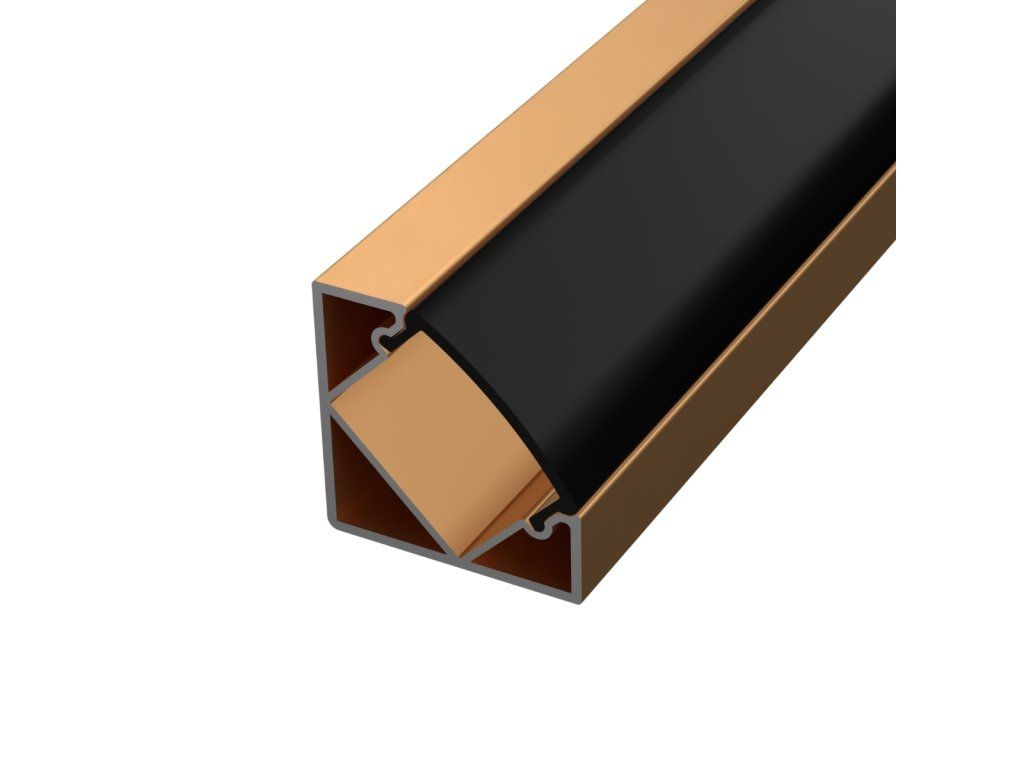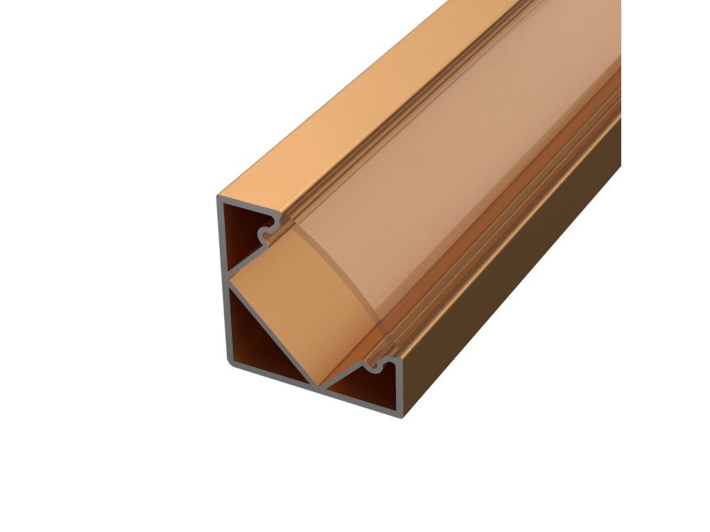 Profilul de col din aluminiu într-un elegant finisaj bronz servește ca radiator pentru banda LED și, în același timp, ca un element de design distinctiv, care se potrivește bine în interioarele cu lemn, piatră sau accesorii metalice calde. Datorită nuanței sale, nu pare tehnic, ci completează în mod natural spațiul modern și industrial.