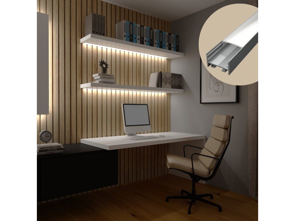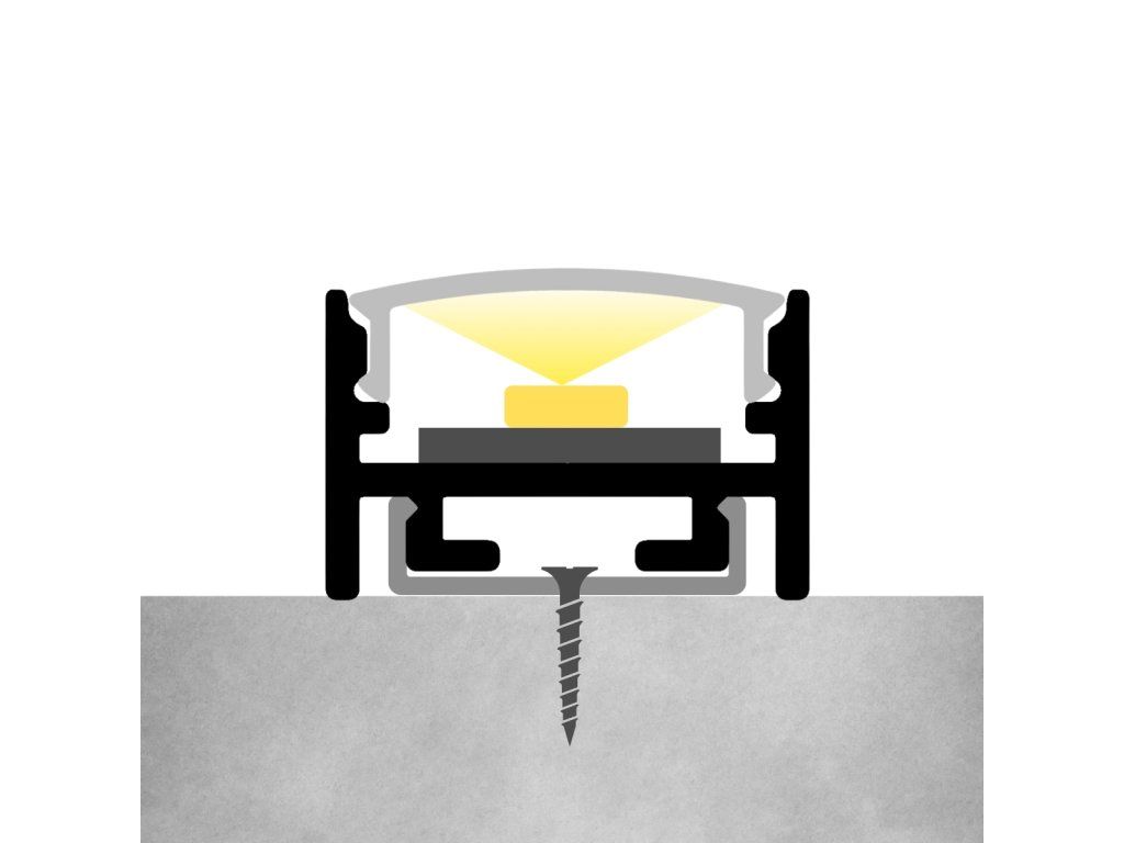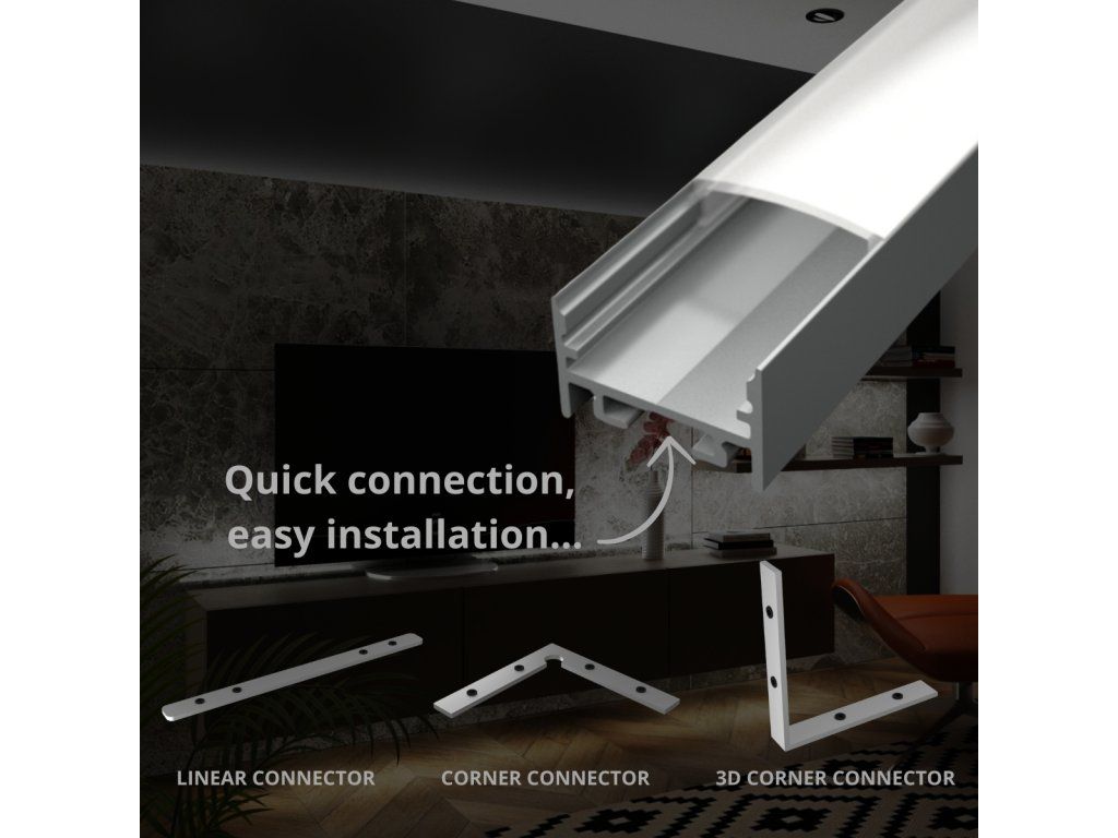Profilul din aluminiu servește ca un radiator eficient pentru banda LED și, în același timp, ca un element de design pentru crearea unei iluminări liniare curate. Datorită construcției sale, este potrivit pentru montaj aplicat și alte tipuri de instalații cu ajutorul accesoriilor disponibile.